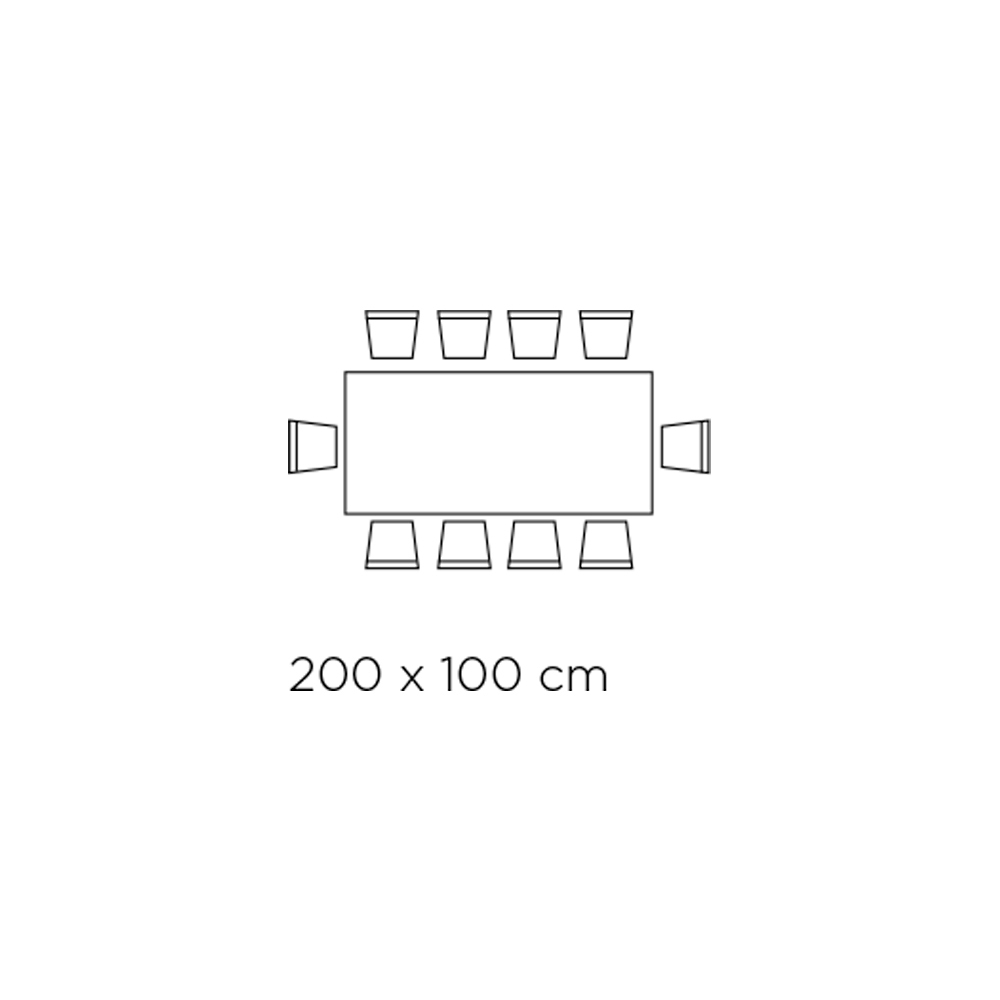 length 200 cm x depth 100 cm x height 74.2 cm (top thickness 12 mm)