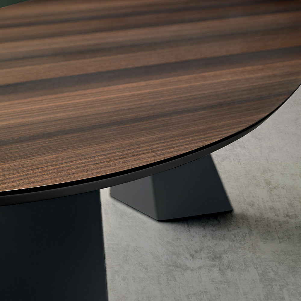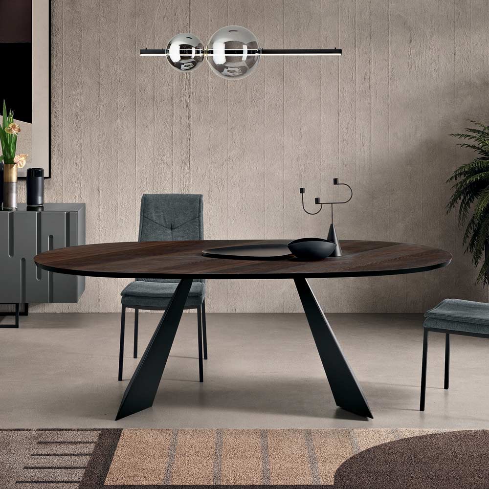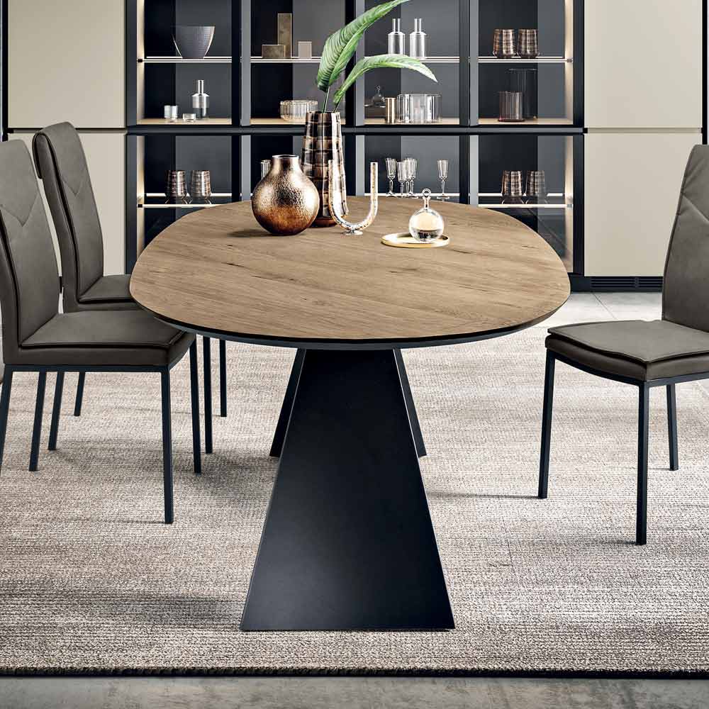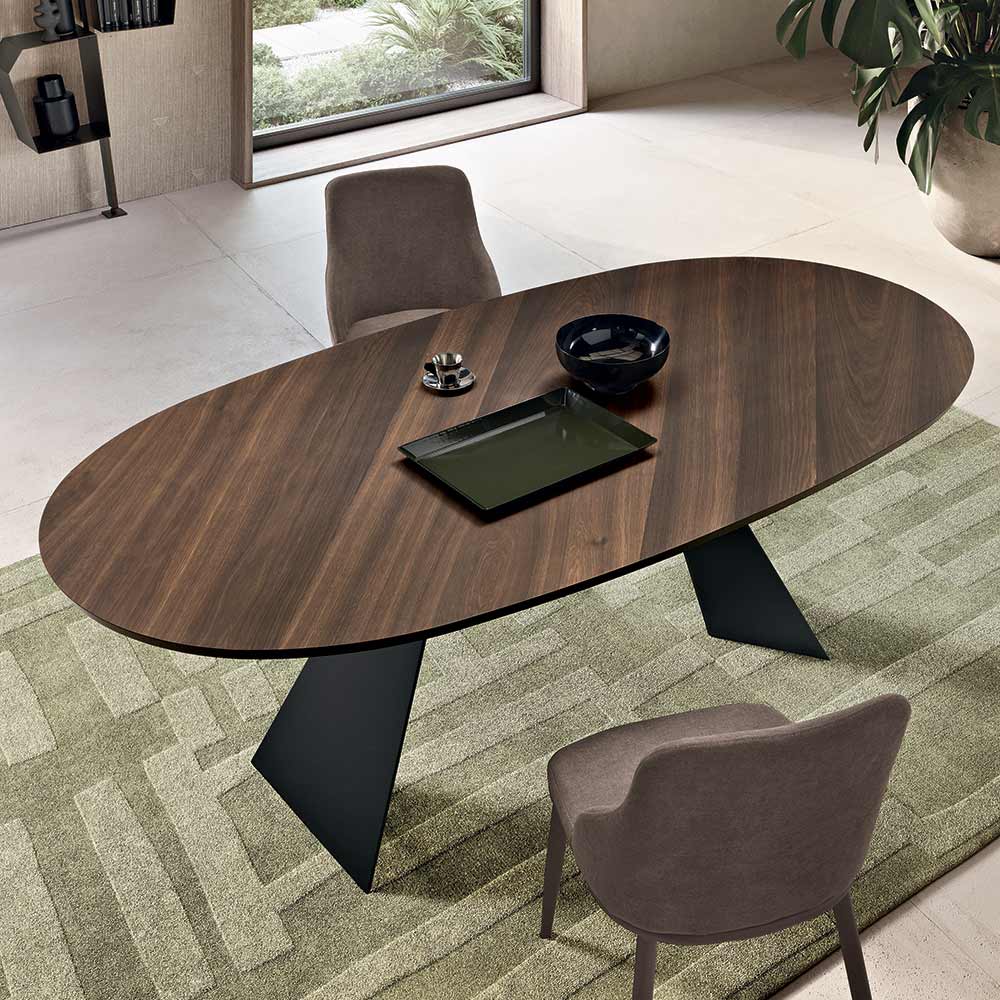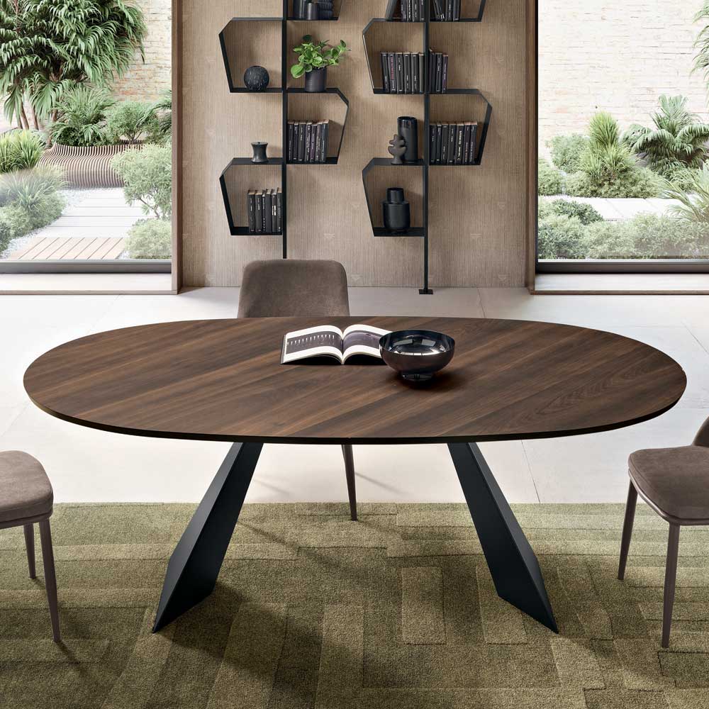 An elegant, Made in Italy designer dining table designed to stylishly furnish your dining room or living area . The table reinterprets the essential design of the Gilmour model with a refined oval top in oak veneer , a choice that lends softness to the lines and encourages conviviality without sharp edges.