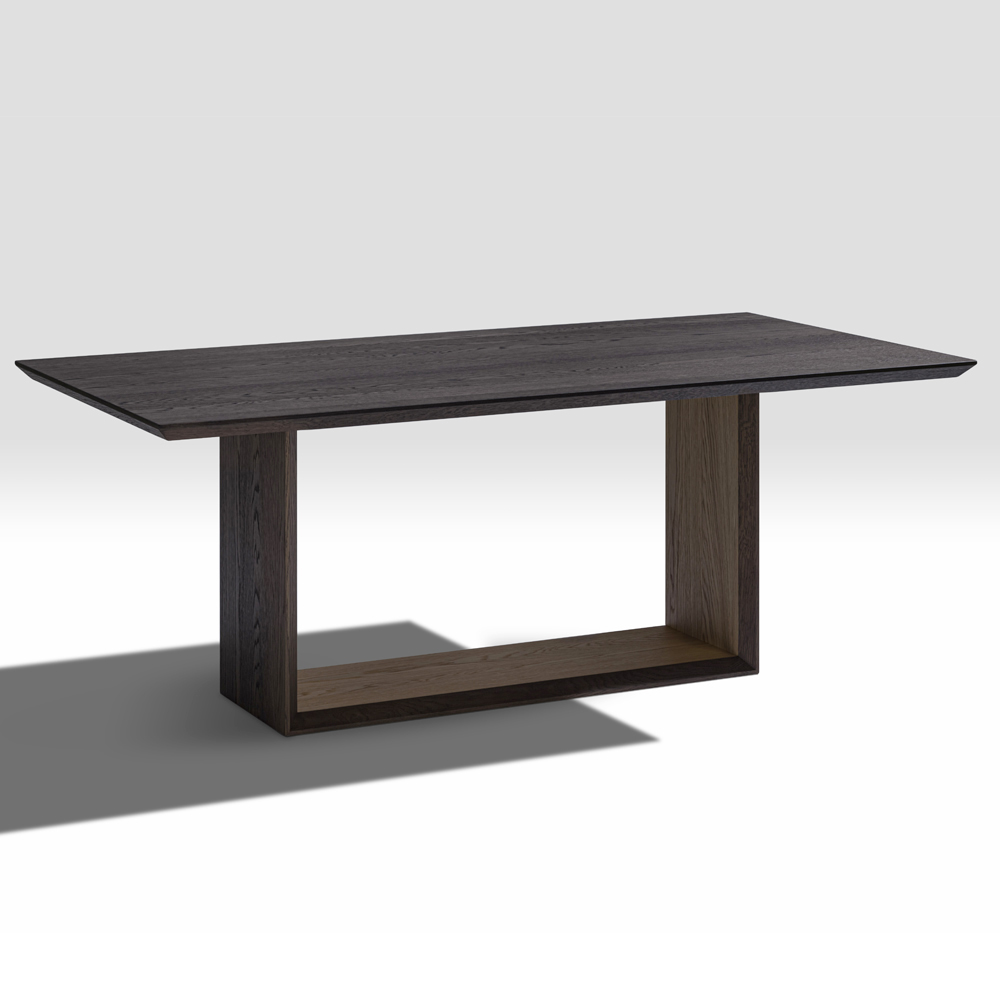 Fixed table with bevelled smoke oak top and two-tone base Made in Italy.
