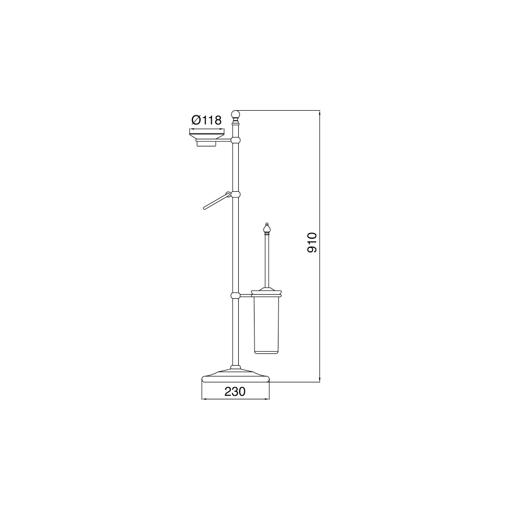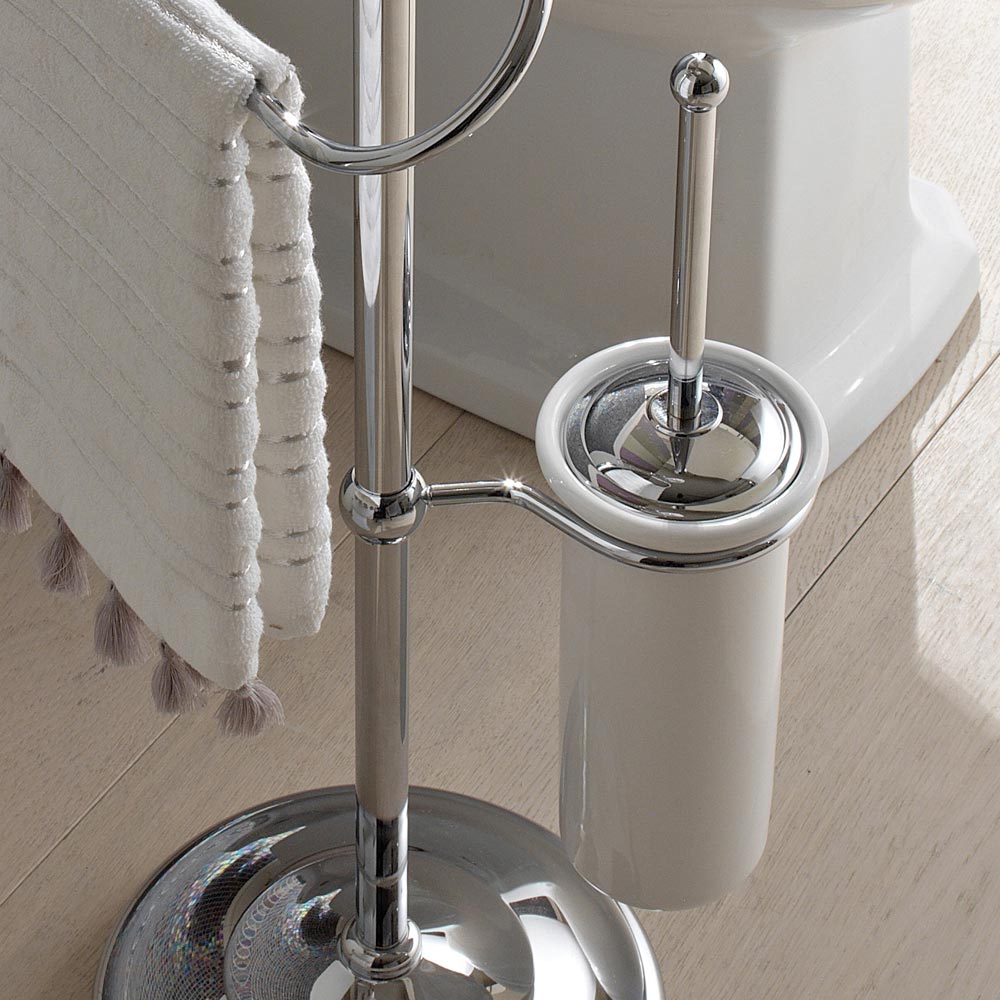 Rouen is a comfortable free standingtowel rail with soap dish. Handcrafted in Italy with high quality materials. The structure is made of brass, the soap dish is ceramic. A practical toilet brush holder, also in ceramic, is available as an option.