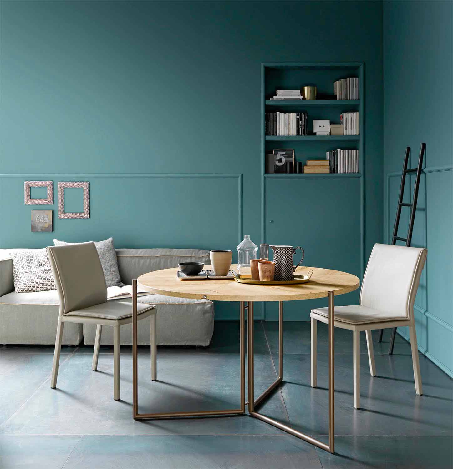 Designer folding dining table with melamine top and metal base Made in Italy.