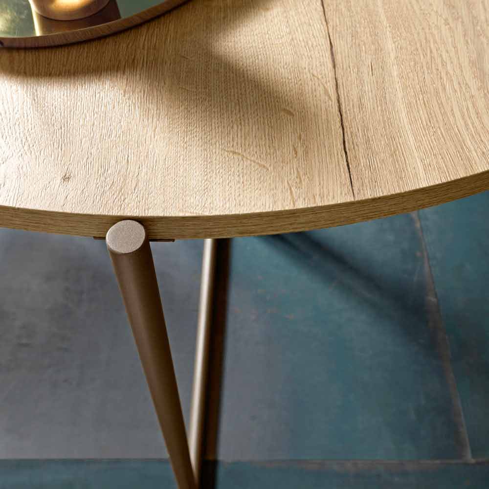 Handcrafted in Italy with high quality materials and 100% made in Italy. Featuring a wood veneered top and a base in embossed bronze painted metal.