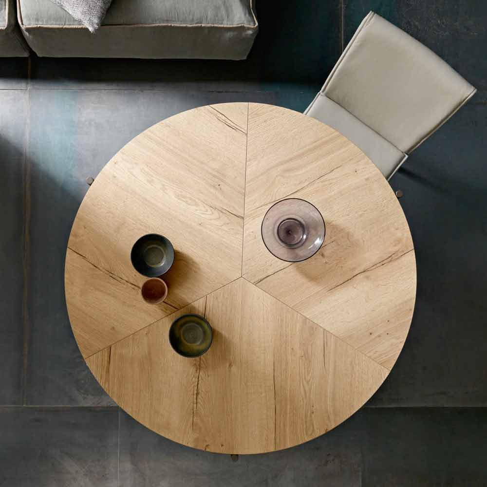 This folding table is characterized by its practicality and an ingenious, dynamic and creative design. Its peculiarity is that it folds like origami to furnish or save space as needed, with a compass opening.