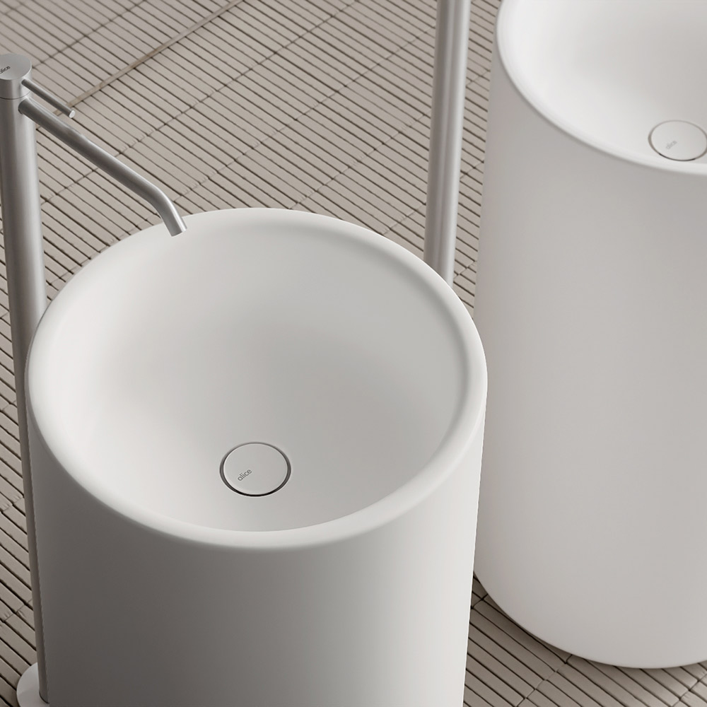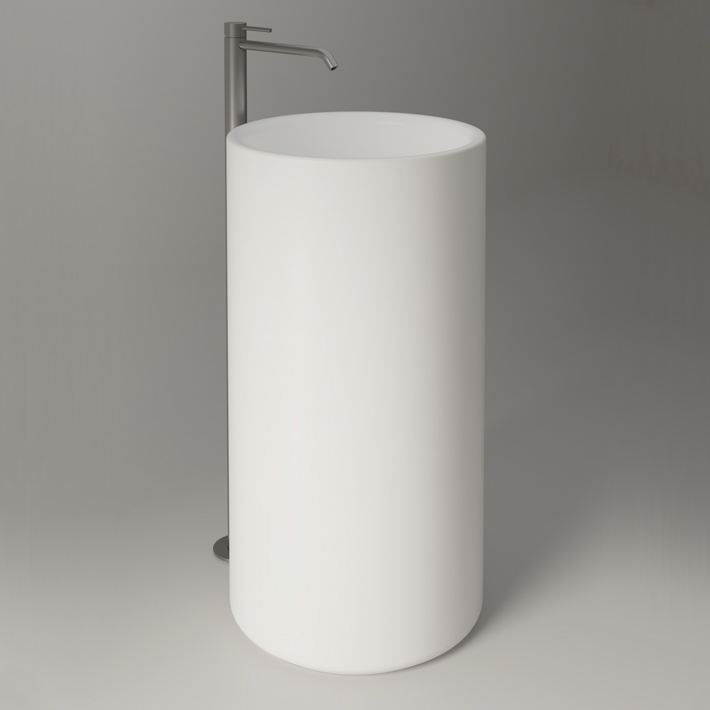 This freestanding ceramic washbasin has a simple and harmonious cylindrical shape, capable of transforming the bathroom into a sophisticated space with great personality.