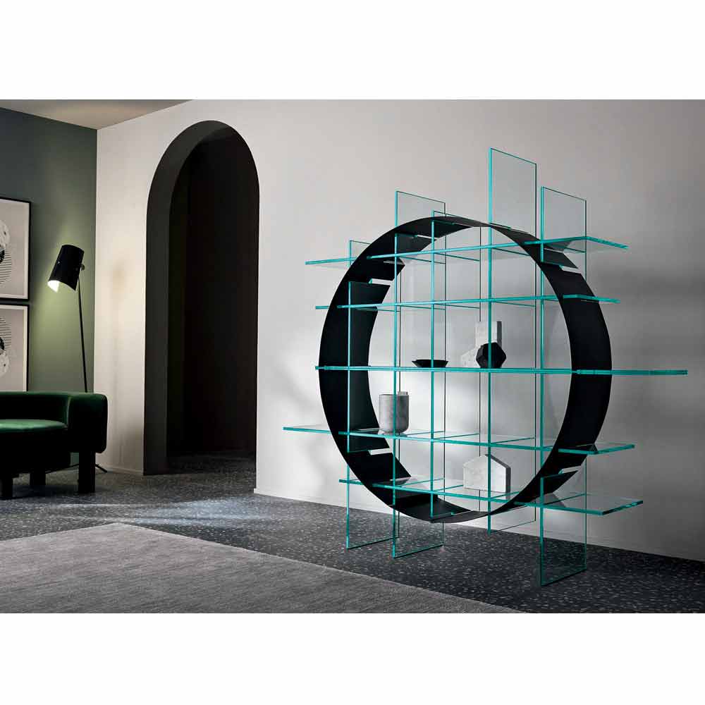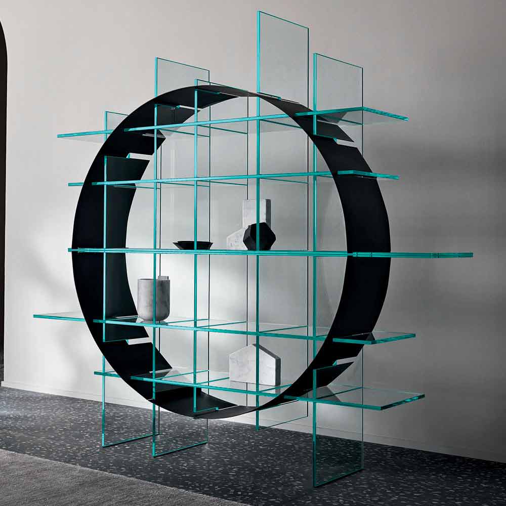 This bookcase for the living room is characterized by its unique and incredibly elegant design, made with sides and shelves entirely in extra-clear glass.