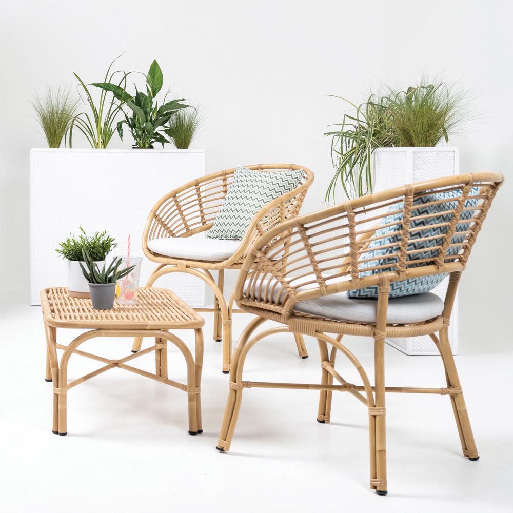 Polyrattan fibres are the highest quality available on the market (VIRO/REHAU). They are made of a special high-density polyethylene (HDPE) and are certified to resist atmospheric agents and even extreme climatic factors, without suffering significant structural damage and preserving colour fastness. Where necessary, we recommend using microfibre cloths, neutral detergents and warm water to clean these fibres.