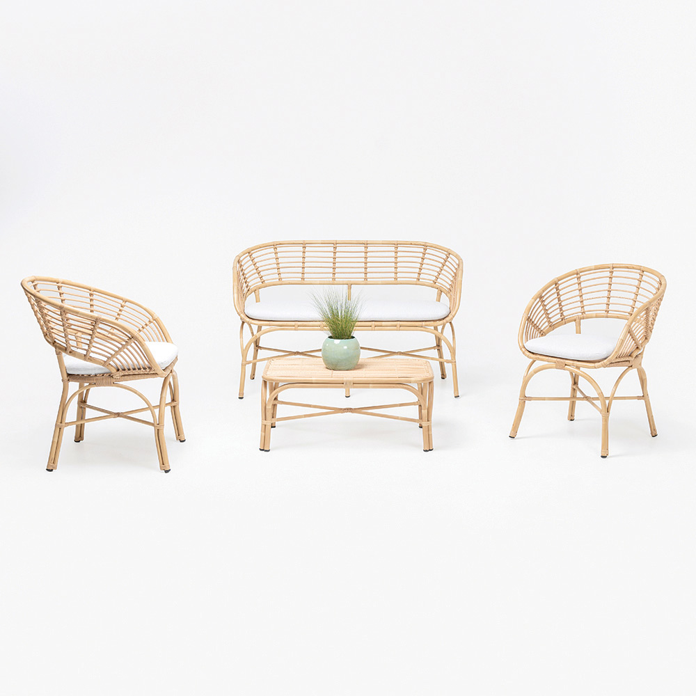 This polyrattan garden armchair is an example of light and elegant design that invites you to moments of pure relaxation. Its structure, with its curved lines and the natural color of the polyrattan, evokes an atmosphere of serenity and simplicity, perfect for creating a corner of paradise in the garden or terrace.