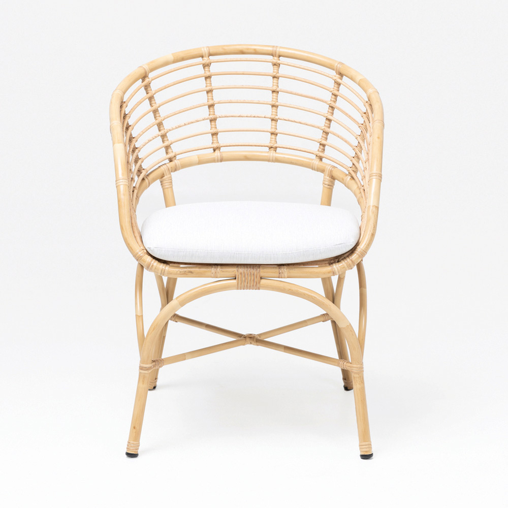 aluminum frame and HQ Polyrattan weave with a natural look finish, seat with cushion in off-white outdoor