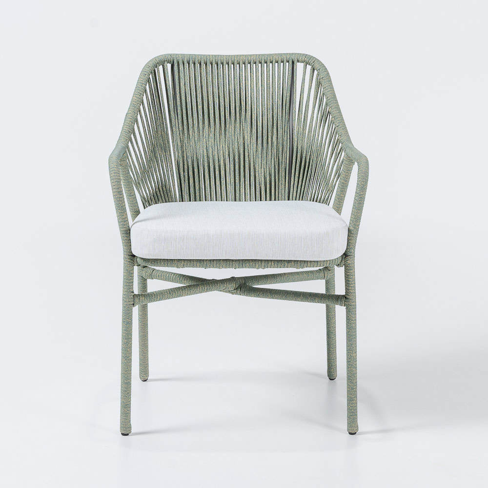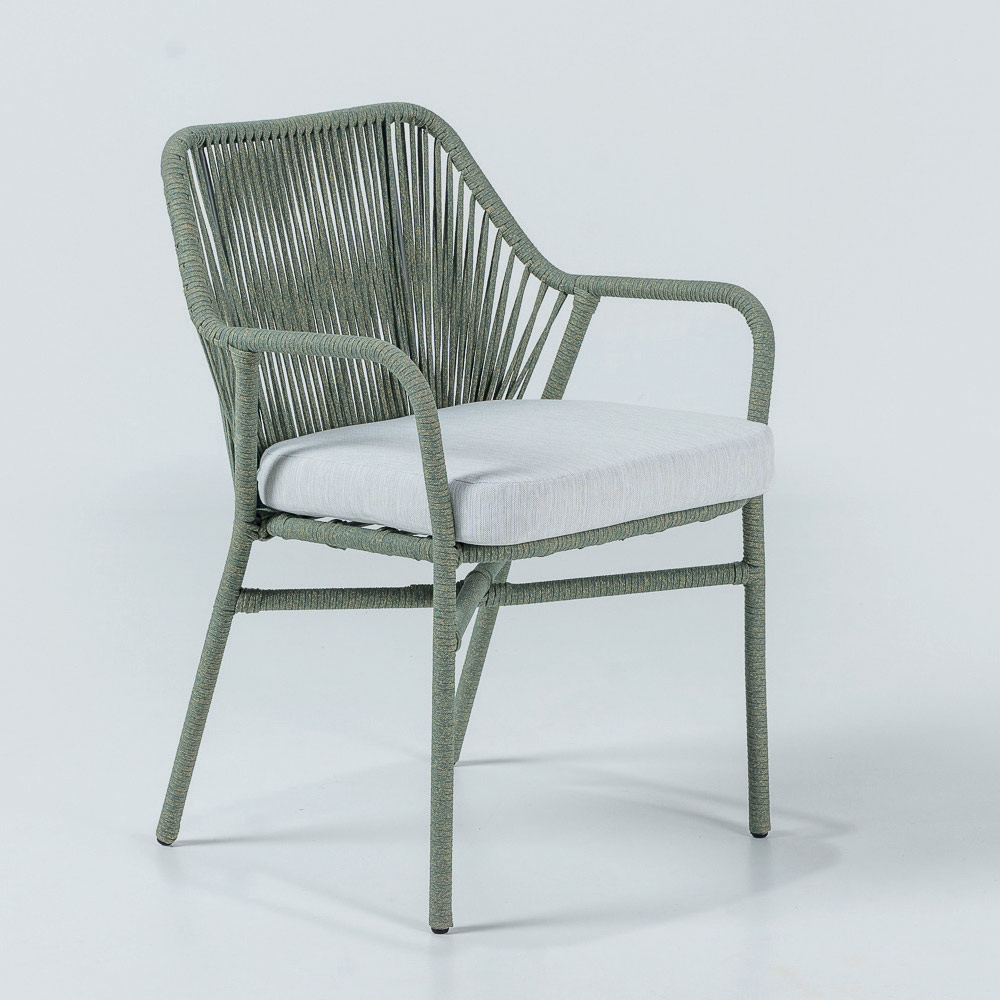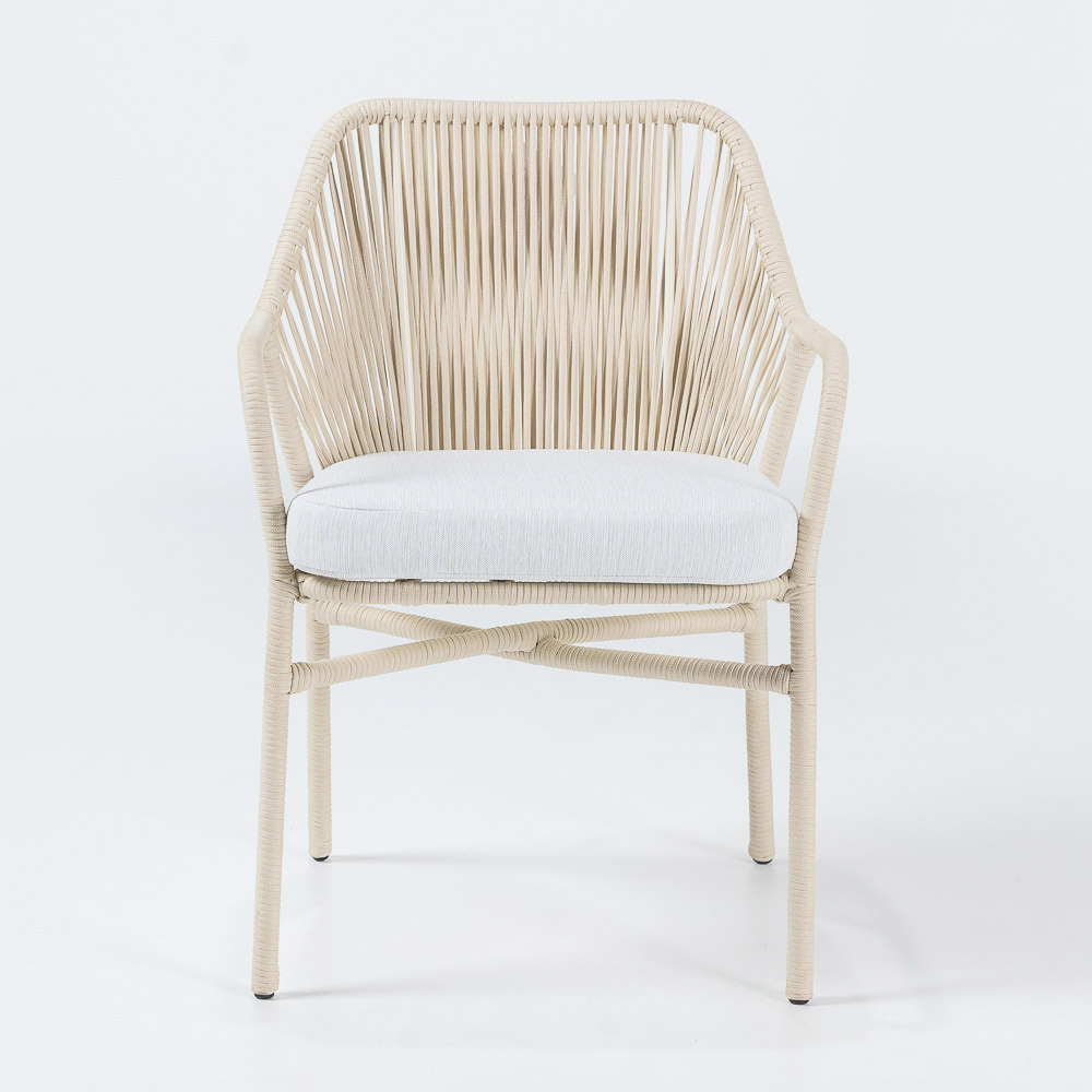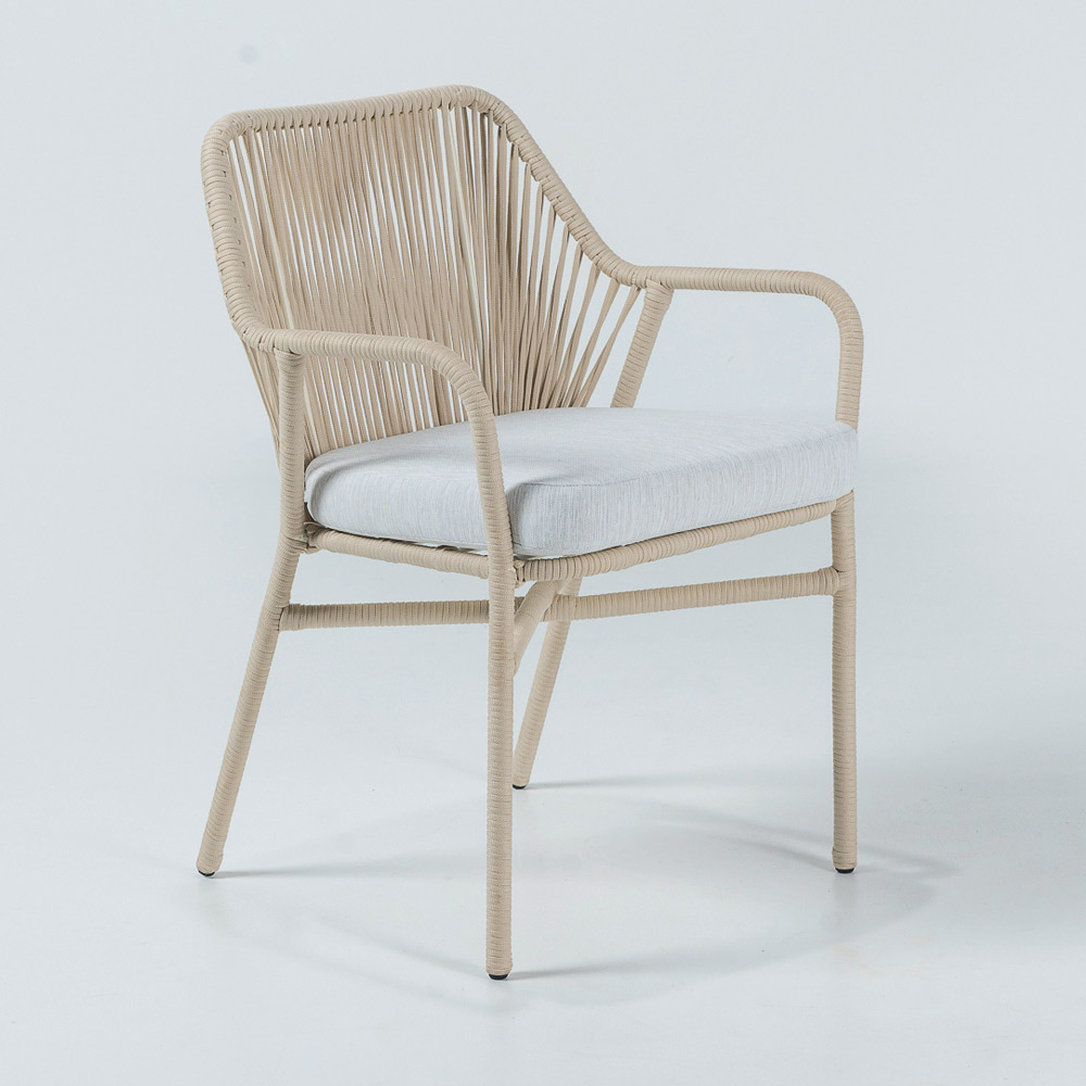 Outdoor armchair made with aluminum frame, Olefin/PP ROPE weave and seat cushion in olefin in the series color "off white".