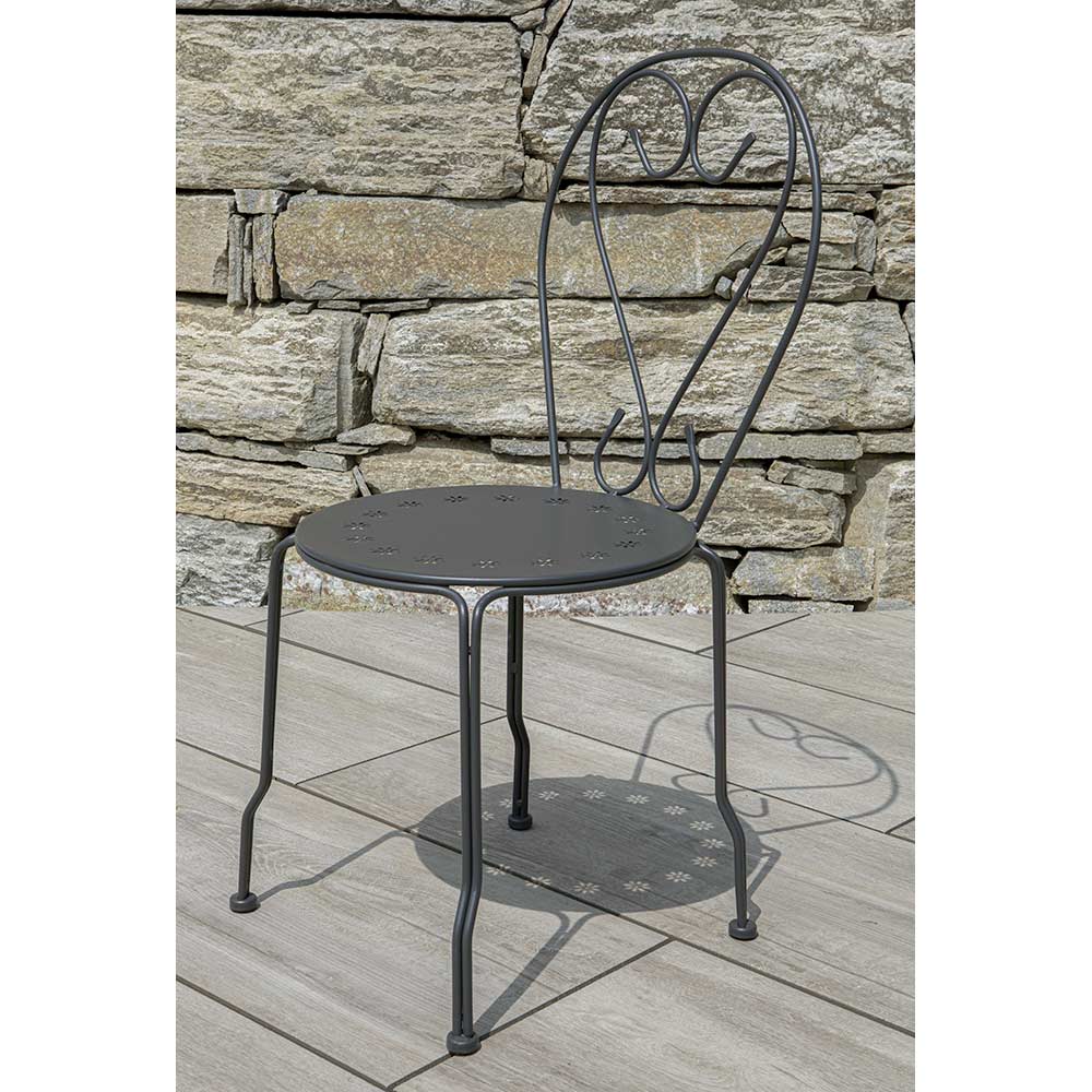 The chair is made of weatherproof metal , ideal for enjoying moments of relaxation in the garden, on the terrace or in a cozy corner of your patio. The attention to detail and the finish make this chair versatile and suitable for different decorative styles, from the most classic and romantic to the modern and minimalist.