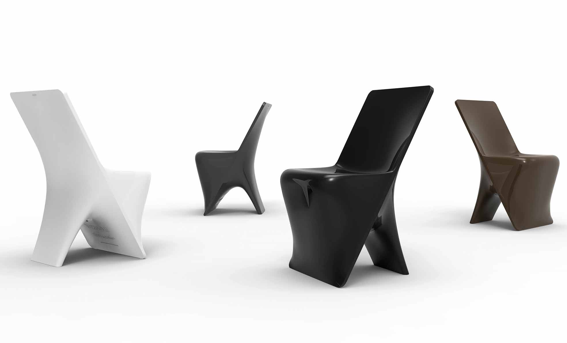 The Sloo by Vondom collection designed by Karim Rashid creates a fusion of liquid and plastic. The perception is that plastic loves to flow and be amorphous, with organic forms that blend gently on flat and smooth surfaces as a result. The Sloo chair is made of polyethylene, a material that allows internal or external use, as the polyethylene resin is highly resistant to shocks and extreme temperatures.
