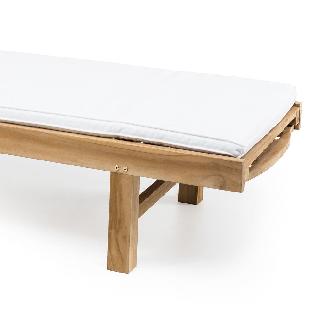 Natural teak garden lounger with removable tray.