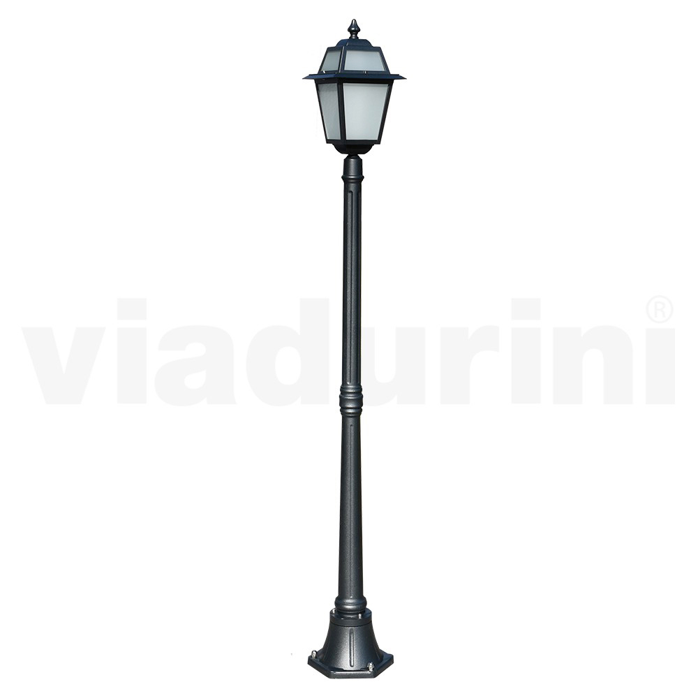 This cast aluminum street lamp with its anthracite finish is a stylish choice for any outdoor setting. With a classic and elegant design, it features crafted details that evoke an atmosphere of times gone by. The lantern, with attention to the smallest details, diffuses a warm and soft light, ideal for creating a luminous path in your garden or for classily delimiting an outdoor relaxation area. Solidity and beauty come together in this street lamp, designed to last over time and resist atmospheric agents. Elegant and functional , it will be the luminous signature of your outdoor space.
