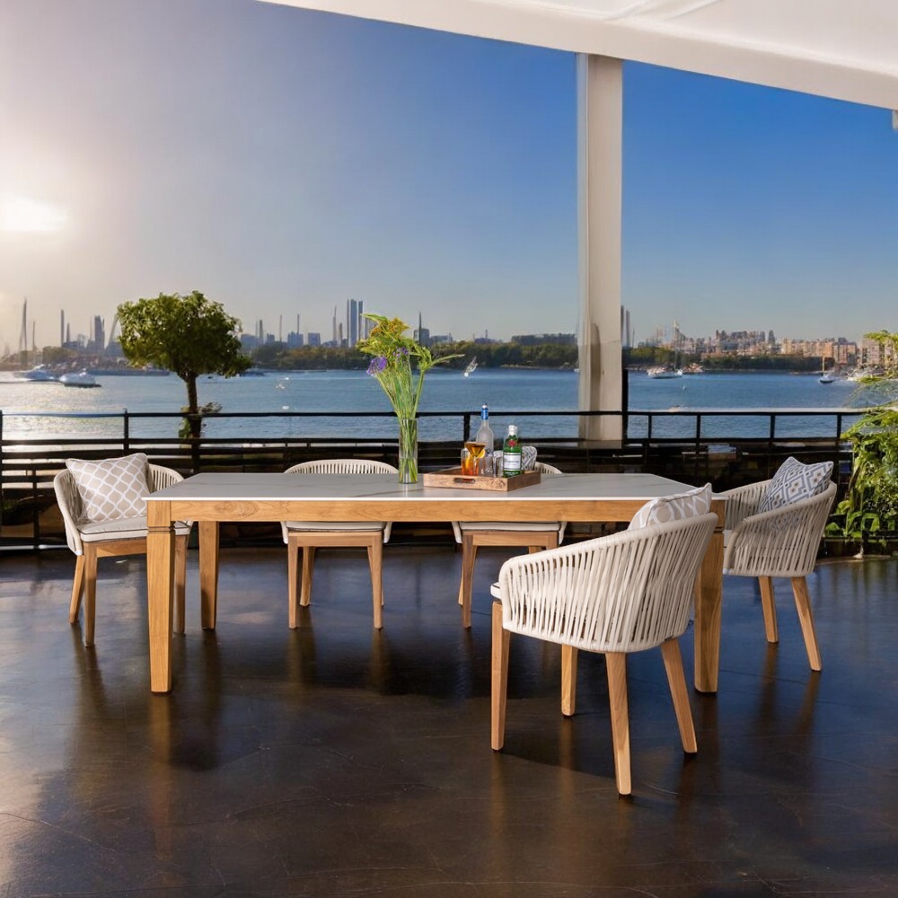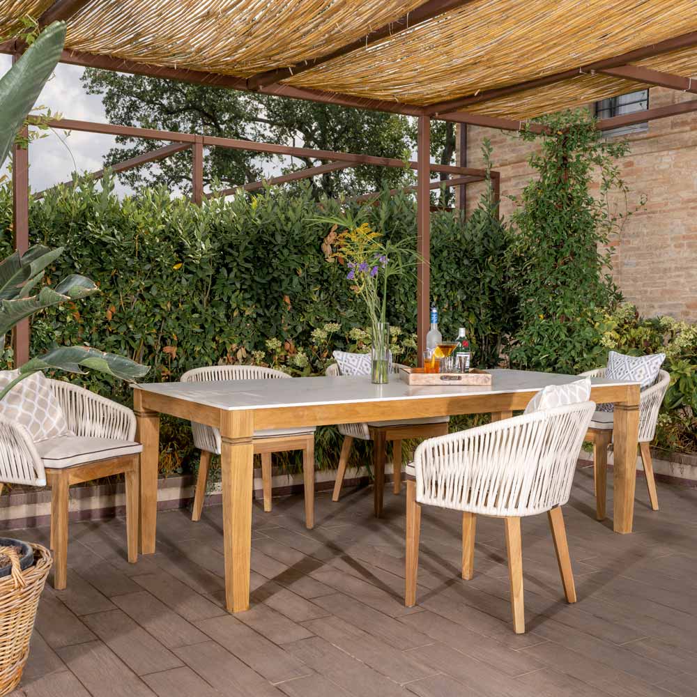 delicate lines is perfect for giving warmth to outdoor environments thanks to the timeless style of teak wood.