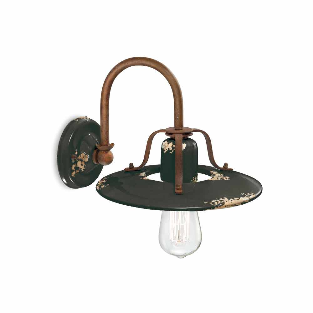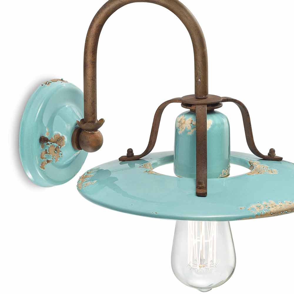 Country spotlight in metal and ceramic Gladys Ferroluce Gladys is a fantastic wall light, reminiscent of a country - vintage style spotlight. Handmade applique by skilled artisans in Italy. Gladys is an original and functional wall lamp, made of ceramic and metal and made up of elegantly sinuous lines. The neglected effect of the surfaces is a desired detail obtained through precise technical steps. As if time had marked its path. A design that is opposed to luxury but which coexists harmoniously with it. A unique applique of its kind, which creates a wide beam of direct light that harmoniously illuminates everything it encounters. Ideal for environments with an urban style and a vintage flavor. Small details for a great effect with an antique flavor! Lamp available in different finishes. Check the color chart and enter the code of the finish you want in the appropriate box!