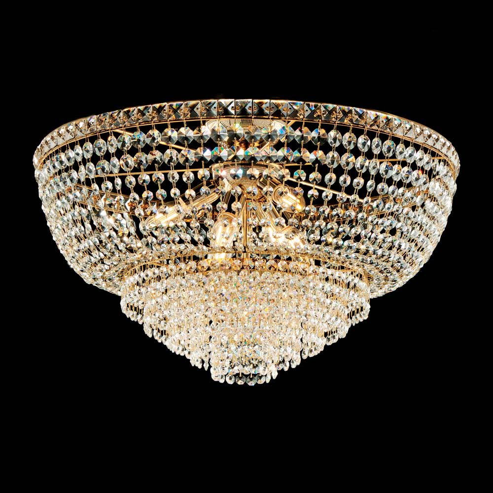 The Polished Gold finish enhances the brilliance of the materials and gives the ceiling light a sumptuous character, ideal for elegant living rooms, dining rooms, master bedrooms, grand entrances and high-end contract environments . A lighting element that expresses all the quality of Italian craftsmanship , combining precious materials and careful workmanship in a timeless design.