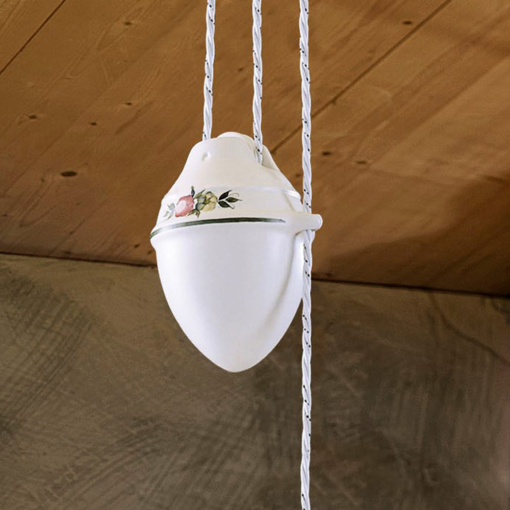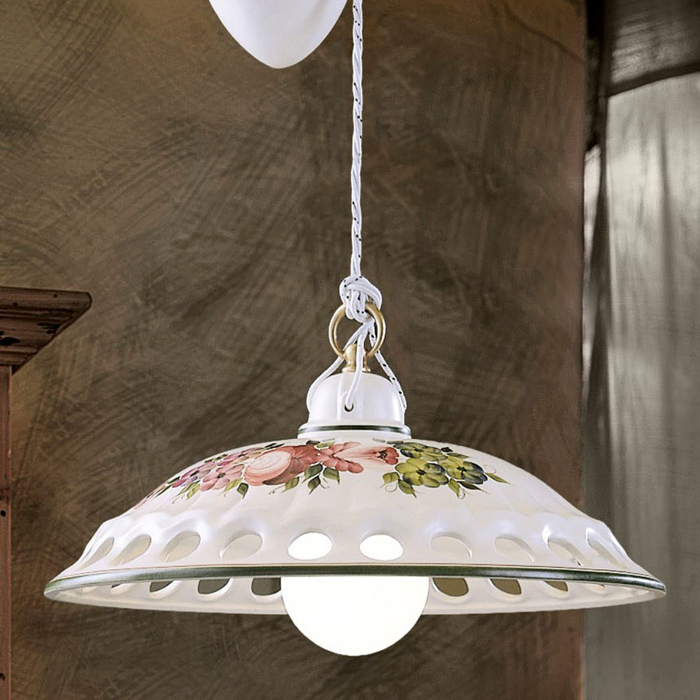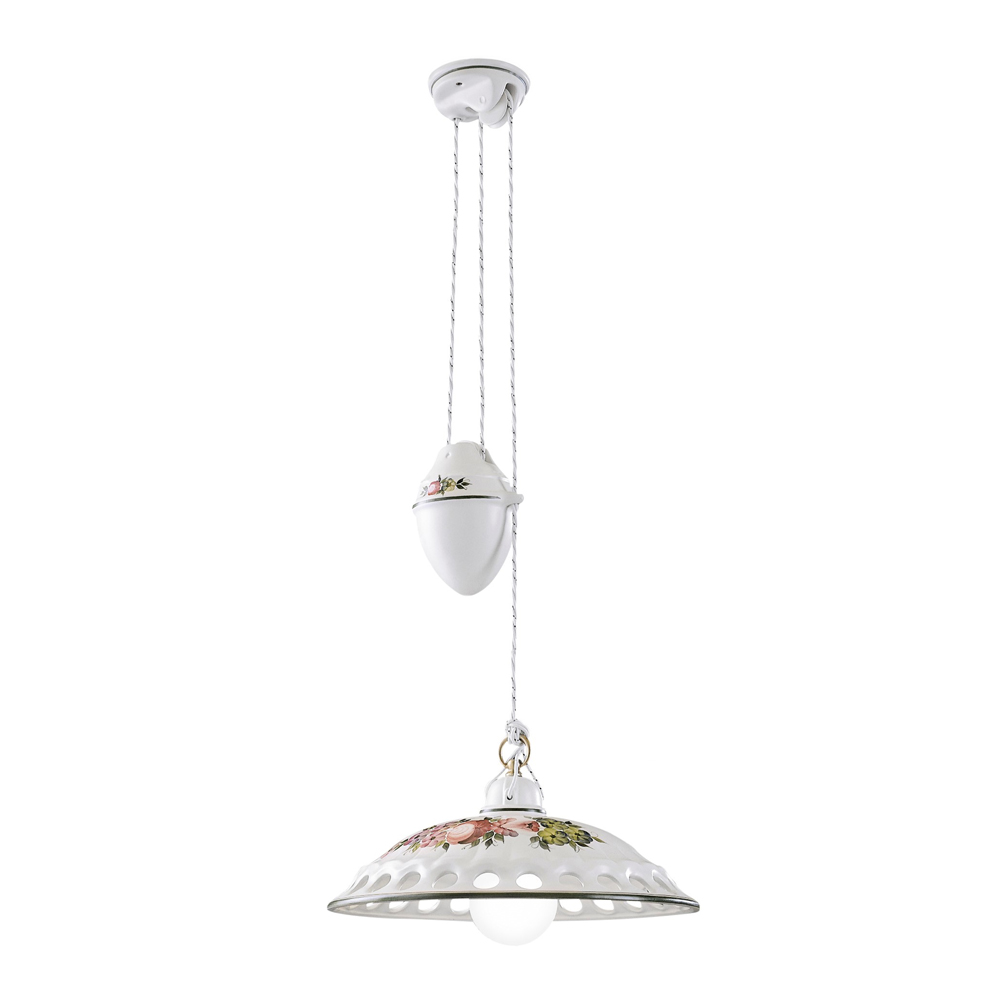 This suspension lamp with sliding rail   it is entirely made of metal and hand-painted ceramic with floral decorations that highlight the skill and dexterity of the craftsmen.