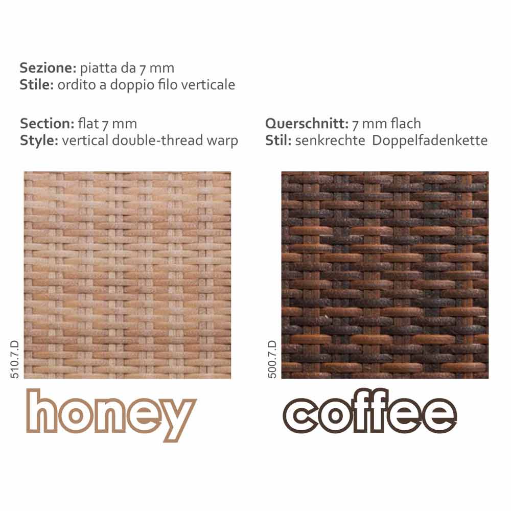 Garden armchair with aluminium frame covered with 7 mm thick flat polyethylene, available in the shades coffee or honey.