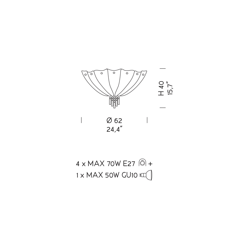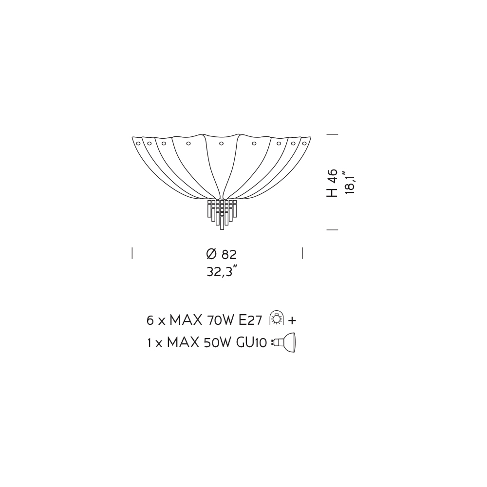 Bulbs (not included) : 5/7 x MAX 70W E27 + 1 x MAX 50W GU10