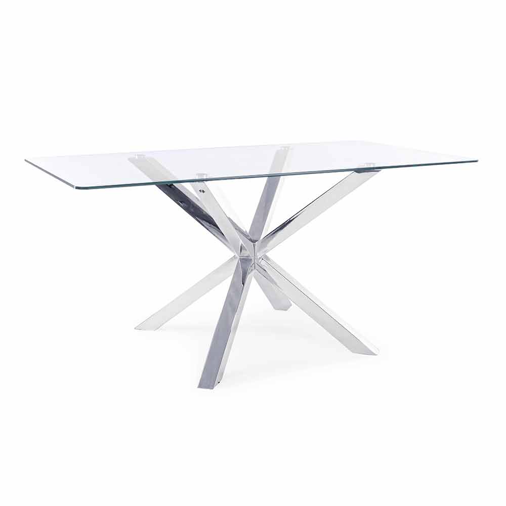 Dining Table in Transparent Glass and Metal Various Colors Made in Italy - Aschio