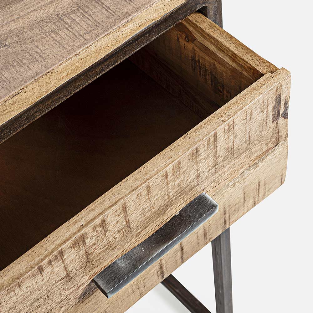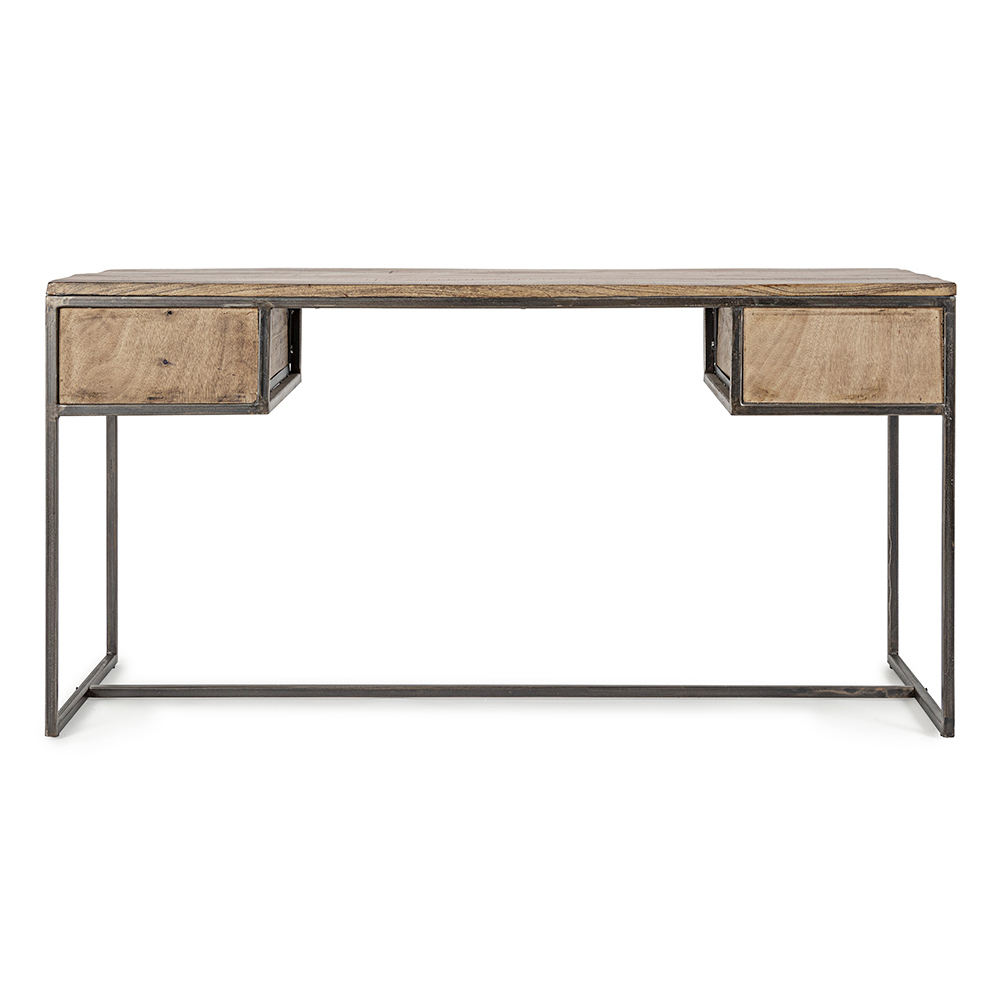 Desk in steel and acacia wood with 2 industrial-style drawers.