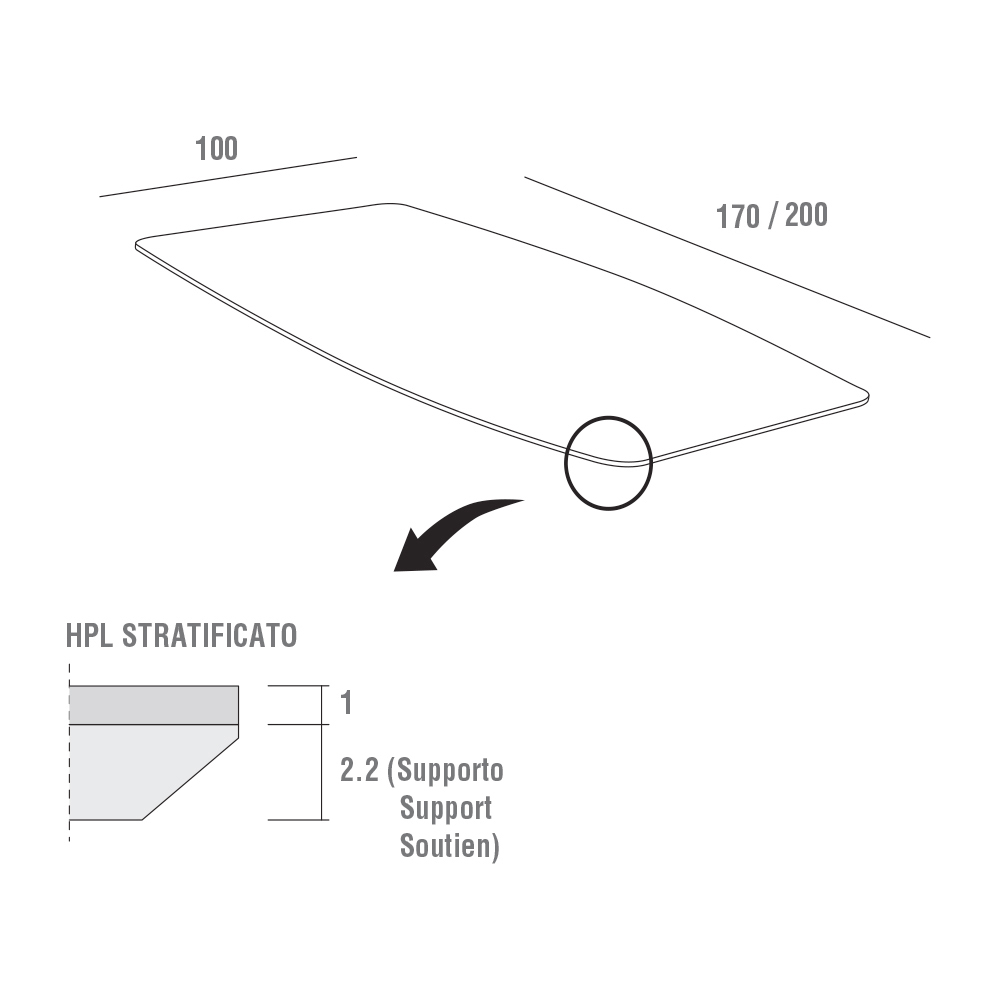 Kitchen table with stratified hpl top (thickness 10 mm) stratified in a barrel shape and supported on an mdf slab and metal legs painted with epoxy powders in anthracite finish. Made in Italy with high quality raw materials , this piece of furniture offers excellent resistance to chemical agents, abrasions and scratches while also ensuring a solid and robust surface capable of maintaining its aesthetic characteristics unchanged over time. In addition, the vast range of finishes proposed, which range from wood effect to stone up to a marble texture, allowing to give different solutions that can meet tastes and needs in an exclusive and refined way. The metal base, on the other hand, gives an original and creative element, completing the look of the table with a touch of modernity.