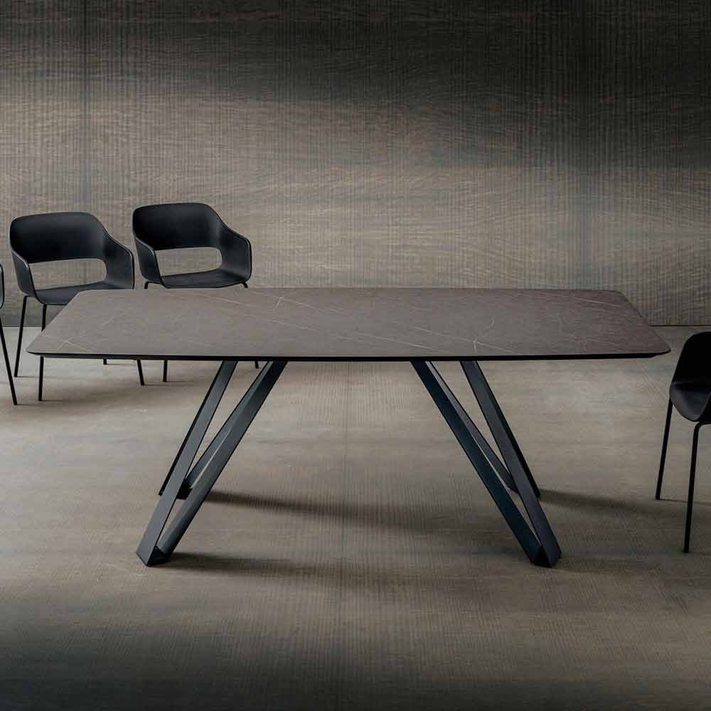 Dining table in stratified hpl and anthracite metal Made in Italy, high quality.