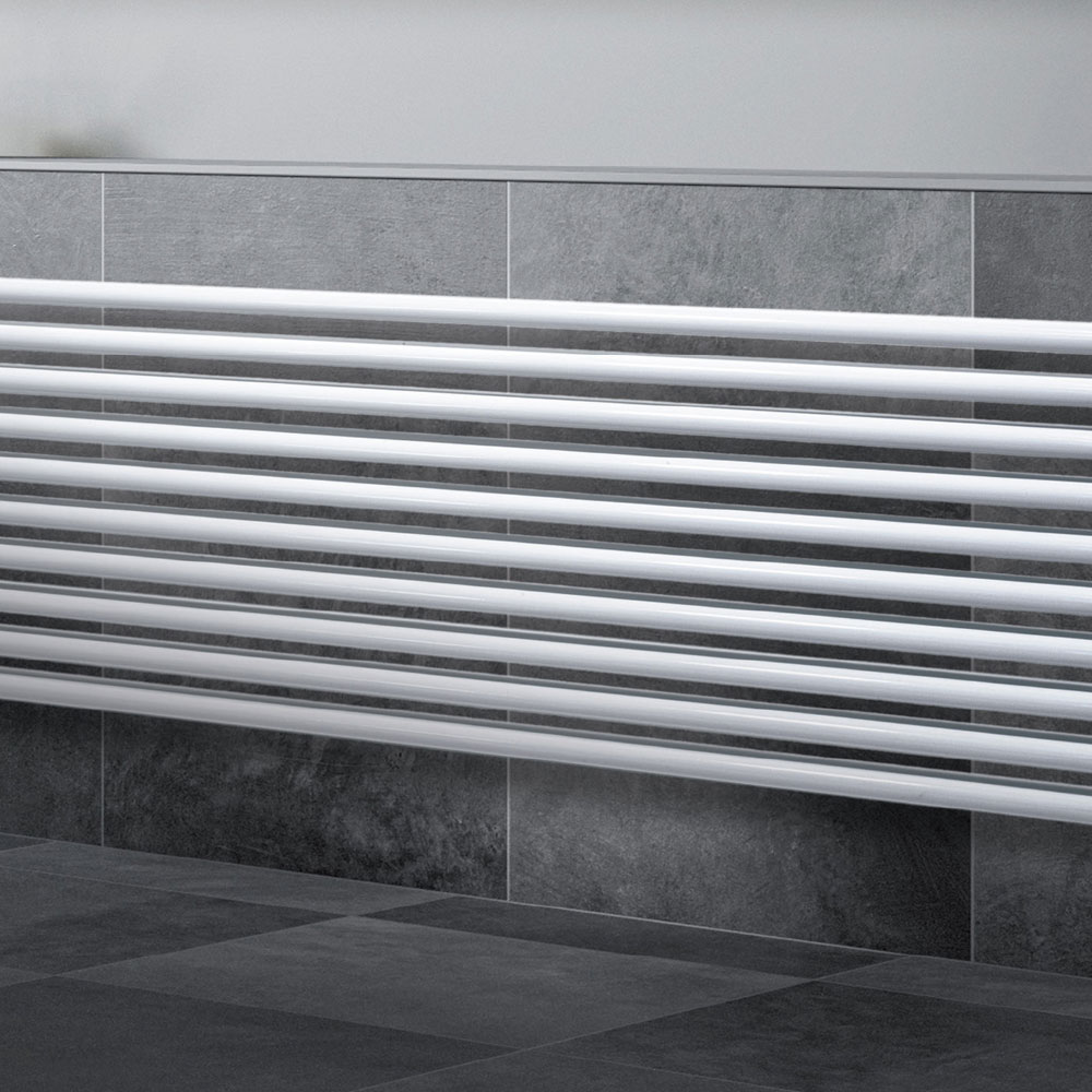 Hydraulic radiator in carbon steel with a pure glossy white finish consisting of a double series of horizontal elements with a diameter of 2.5 cm welded onto vertical manifolds with a diameter of 3.5 cm entirely made in Italy with wall fixing kit, vent valve and blind plug included . Design and functionality come together to give life to a unique and efficient element that adapts to complete the furnishing of any environment. It is a product made with cutting-edge technologies that work materials of excellent reliability and resistance in a factory in the province of Treviso, a short distance from Venice to guarantee the quality of Made in Italy craftsmanship.