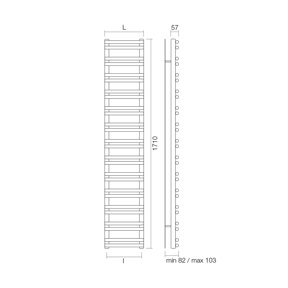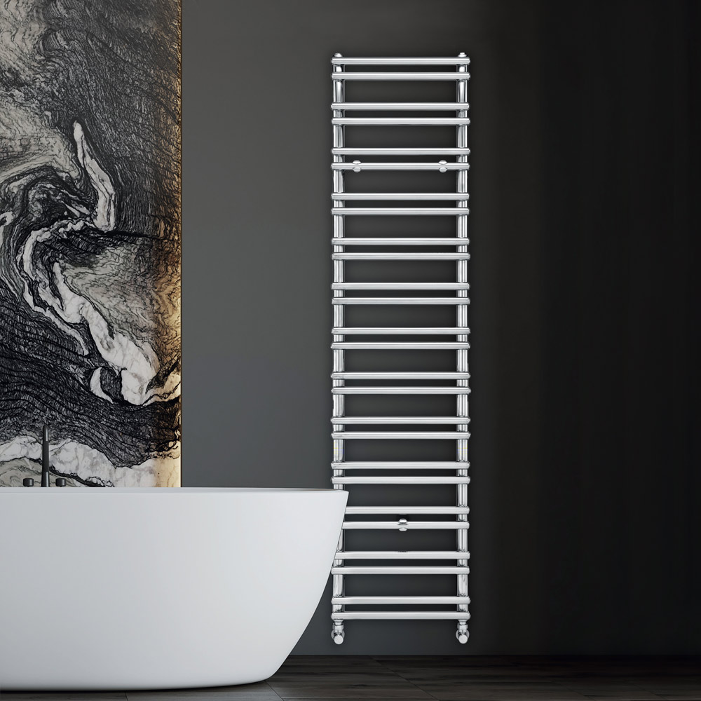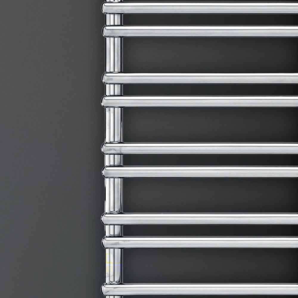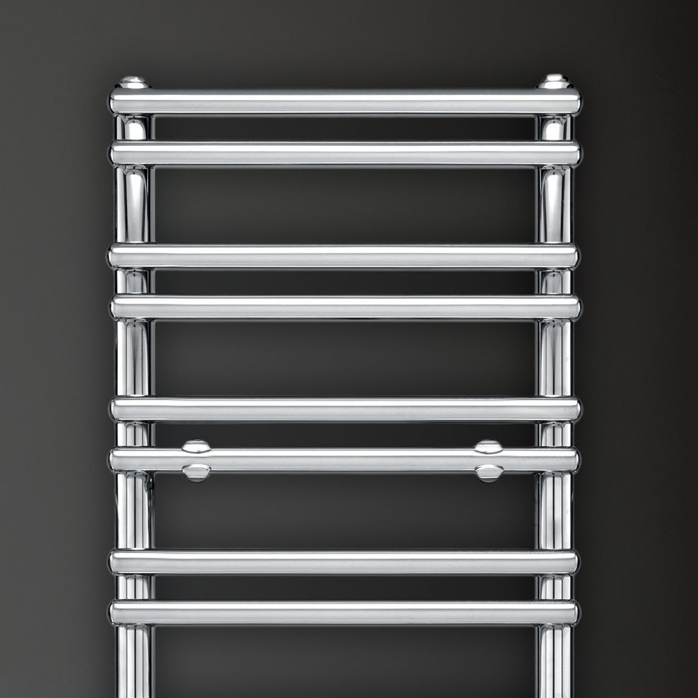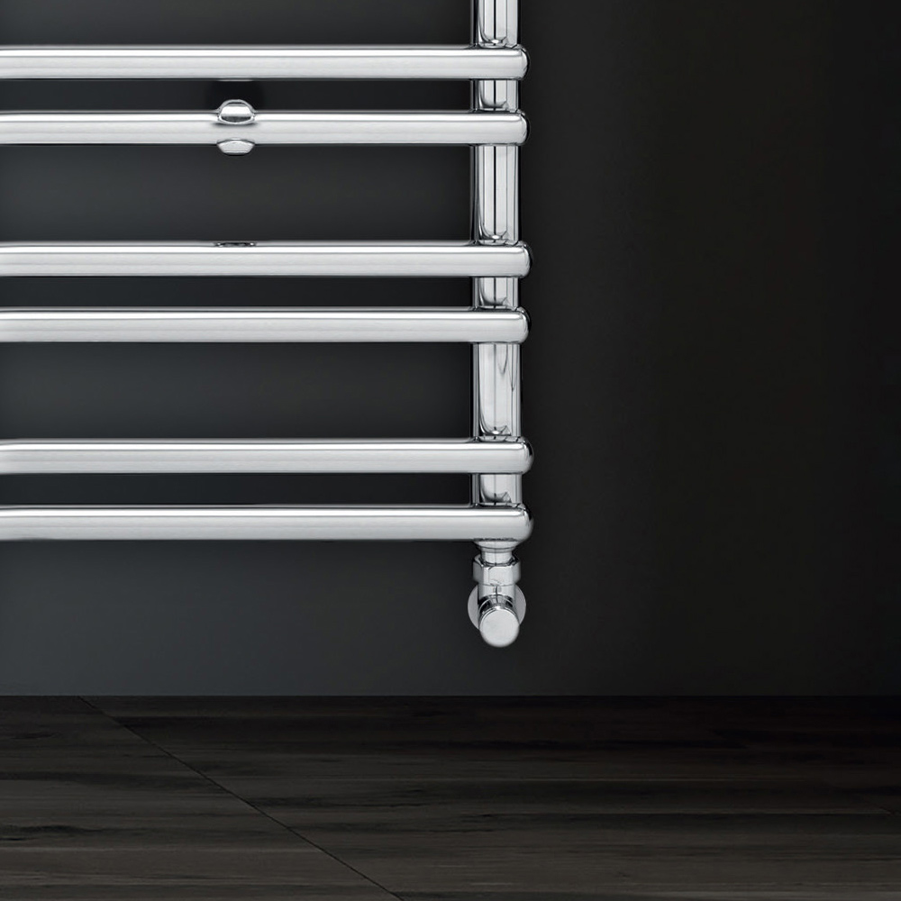 Hydraulic towel warmer in carbon steel with achrome finish consisting of a series of horizontal elements with a diameter of 2.5 cm welded onto vertical manifolds with a diameter of 3.5 cm. Entirely made in Italy with wall fixing kit, vent valve and blind plug included . The production process of this radiator is devoted to quality, innovation and excellence and is developed in a factory in Treviso, a few kilometers from Venice, to ensure all the quality of Made in Italy. This is much more than a simple heat diffuser, it is a real design object, a source of well-being and aesthetic pleasure.