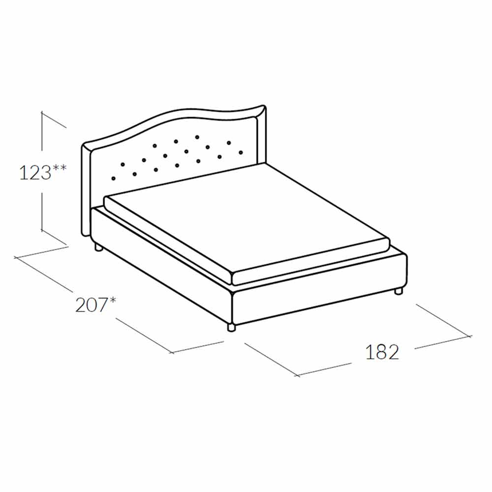 The Agly double bed with container is available in the version for a 160x190 cm slatted base or for a 160x200 cm slatted base: - 160x190 cm; overall dimensions L182 x P 211 x H 128 cm - 160x200 cm; overall dimensions L182 x P 221 x H 128 cm