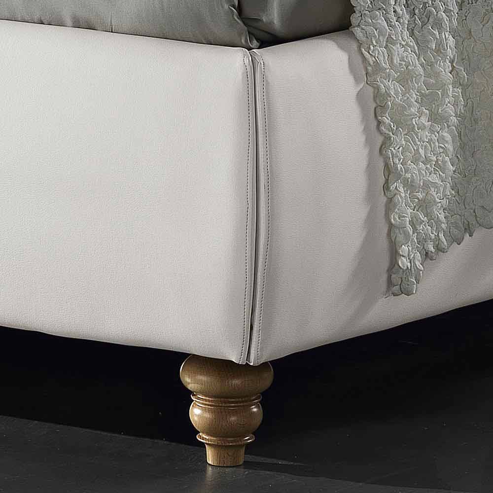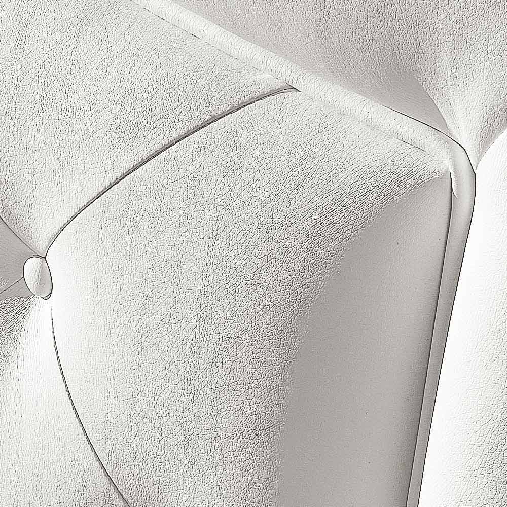 The Agly bed characterizes the environment by creating suggestions with an ancient flavor. The structure is rich and refined, in line with the classic tradition of upholstered beds. The quality of the stitching of the eco-leather upholstery enhances its originality. Headboard decorated with buttons (not removable) Onion feet in natural wood H 13 cm, protrusion from the ground 12 cm.