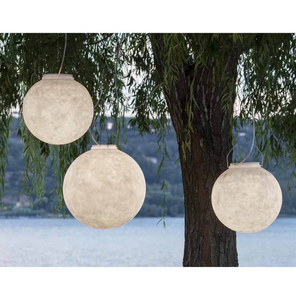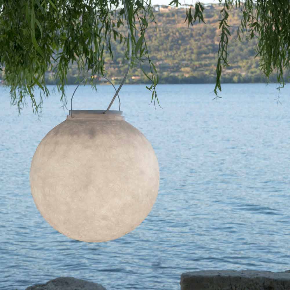 Outdoor suspension lamp in nebulite In-es.artdesign Luna Out The Luna Out outdoor pendant lamp is characterized by an elegant and refined design. Created by In-es.artdesign for the Out collection with high quality materials: laprene, steel and finally Nebulite which is a material composed of resin and fiber, whose veins give the lamp a particular "lunar" effect.