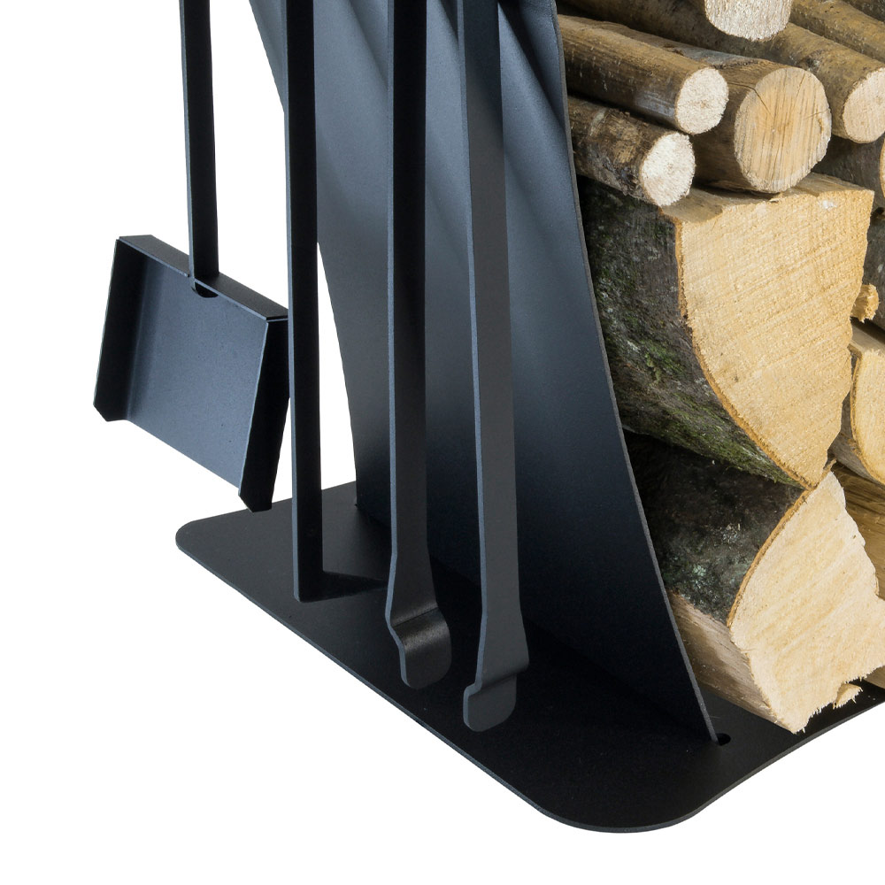 Indoor firewood holder in painted steel with 3 Made in Italy accessories.