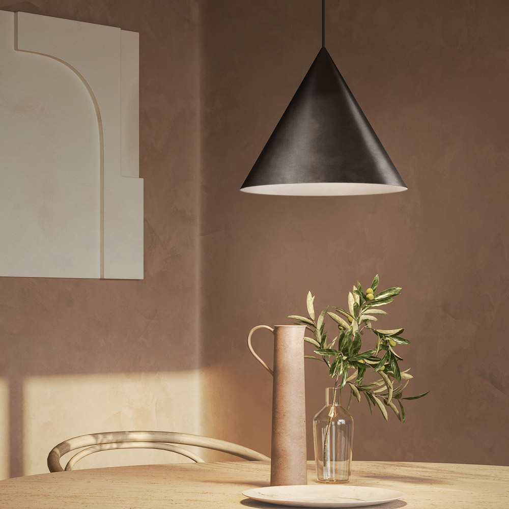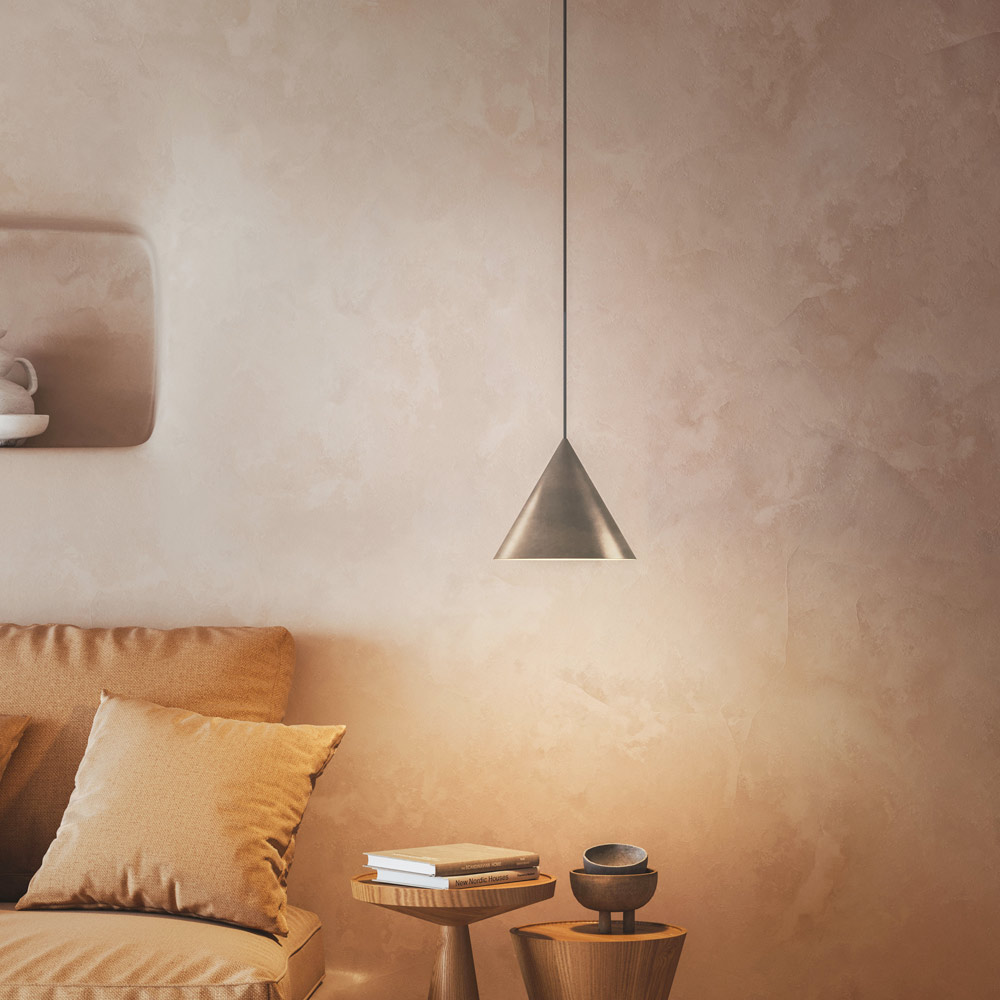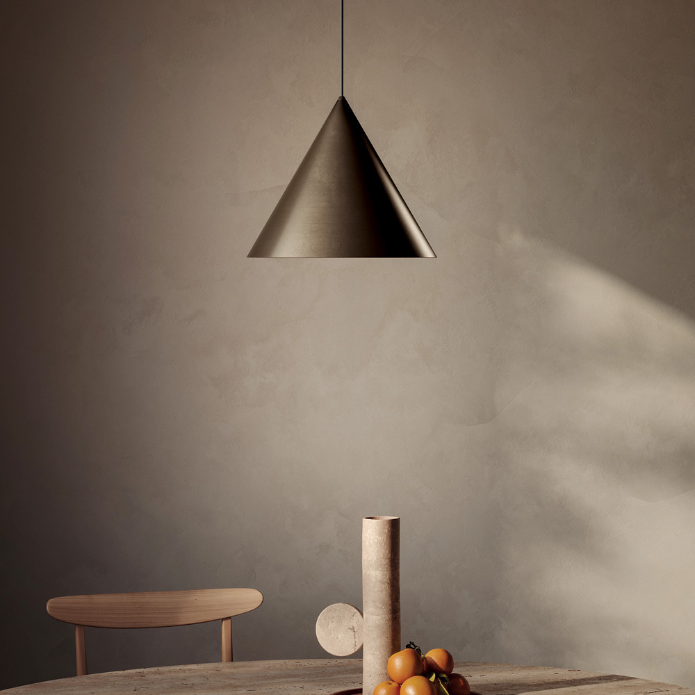 Indoor pendant lamp available in different finishes and two sizes with adjustable length cable entirely Made in Italy. The collection of lamps and wall lights is a clear reference to the natural simplicity of the form. The classic sign but at the same time completes any space, domestic or public.