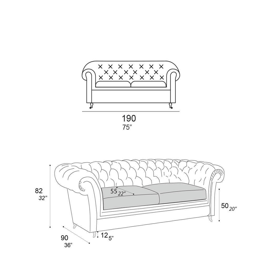 Available sizes:- length: 190 x depth: 90 x height: 82 cm