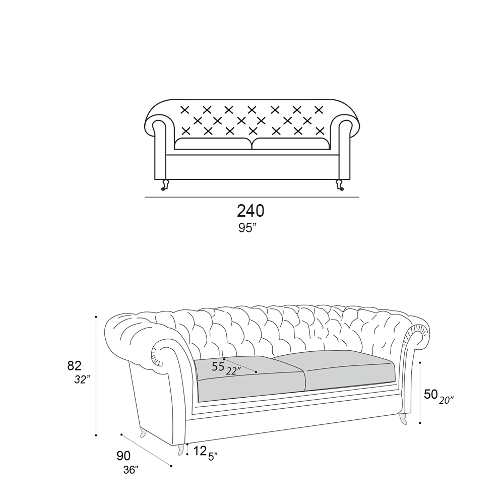 - length: 240 x depth: 90 x height: 82 cm