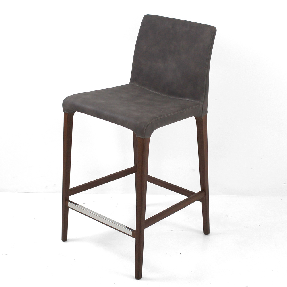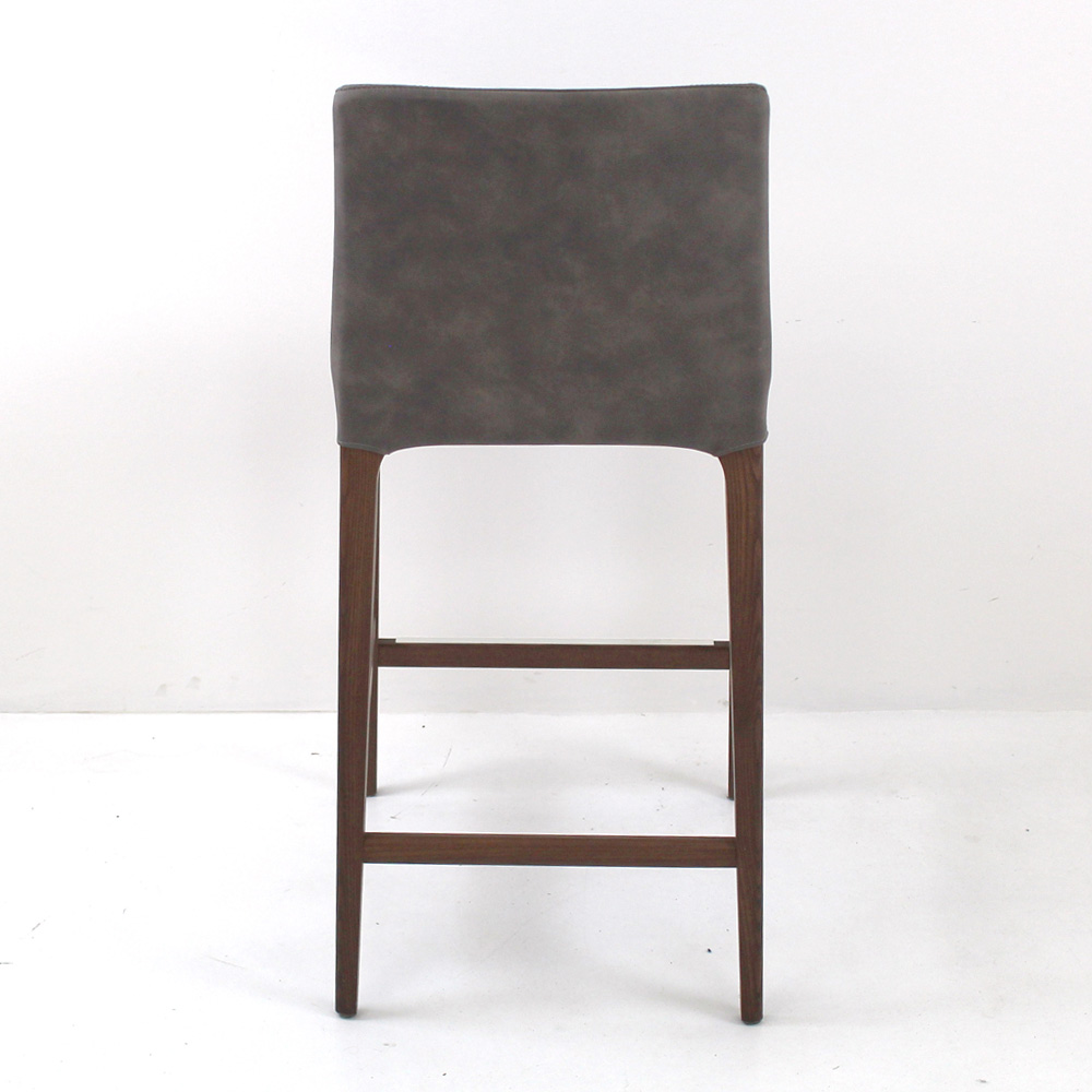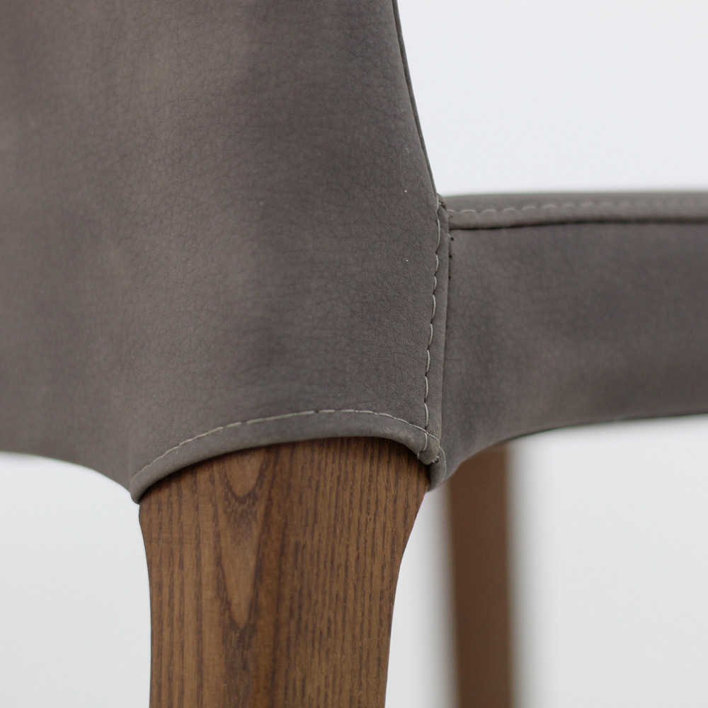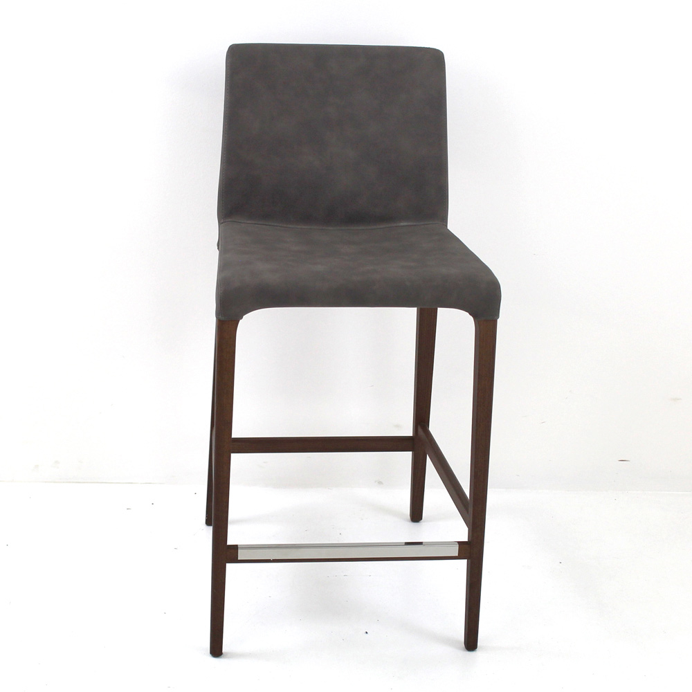 Dining stool entirely made in Italy with medium walnut-stained ash wood structure and earth-colored imitation leather seat. Stool with a timeless charm, it combines the elegance of wood and the refinement of imitation leather, creating a modern reinterpretation perfect for furnishing any living room. It is ideal for domestic and contract use thanks to its simple and linear finishes. The materials used for the construction guarantee quality and resistance even over time.