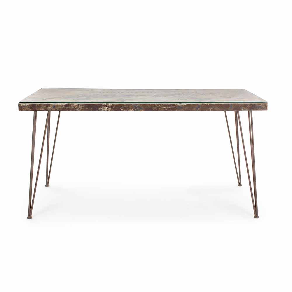 Industrial Style Dining Table with Top in Mdf and Glass Homemotion - Brasil