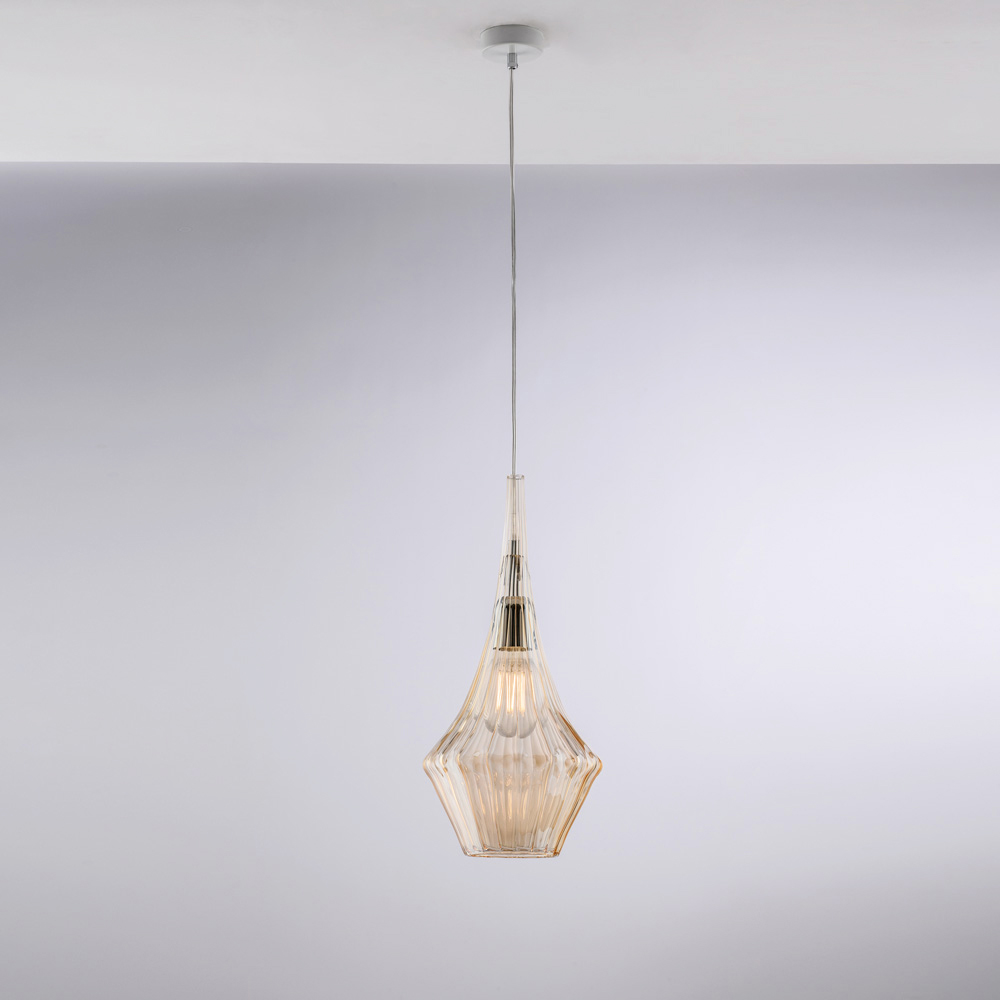 Available in Transparent , Amber , or Gray finishes, this pendant light allows you to customize the style of your space: bright and minimalist in the transparent version, warm and enveloping in amber, modern and elegant in gray. Perfect for kitchens , islands , dining tables , hallways , reading corners , and designer contract spaces , both individually and in compositions.