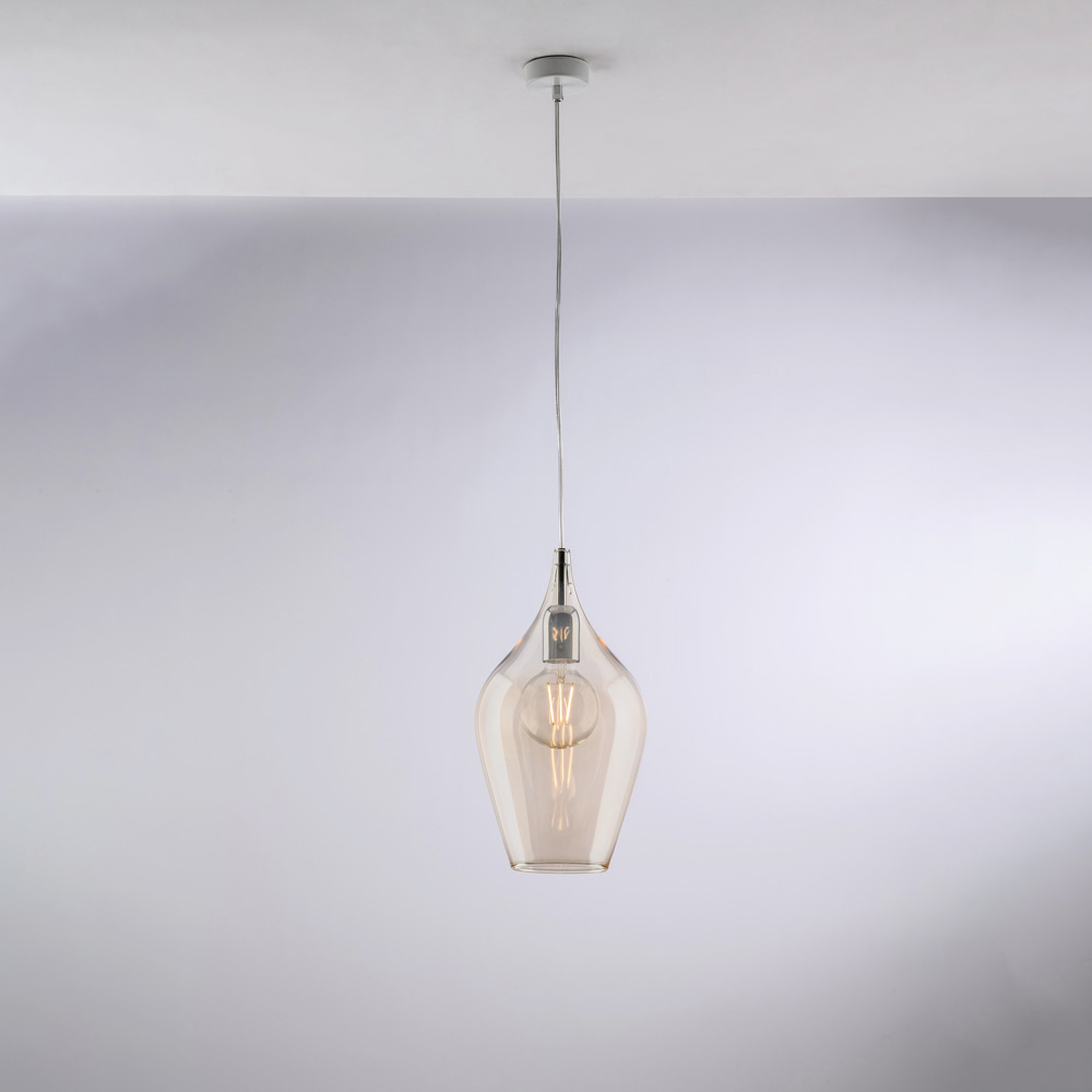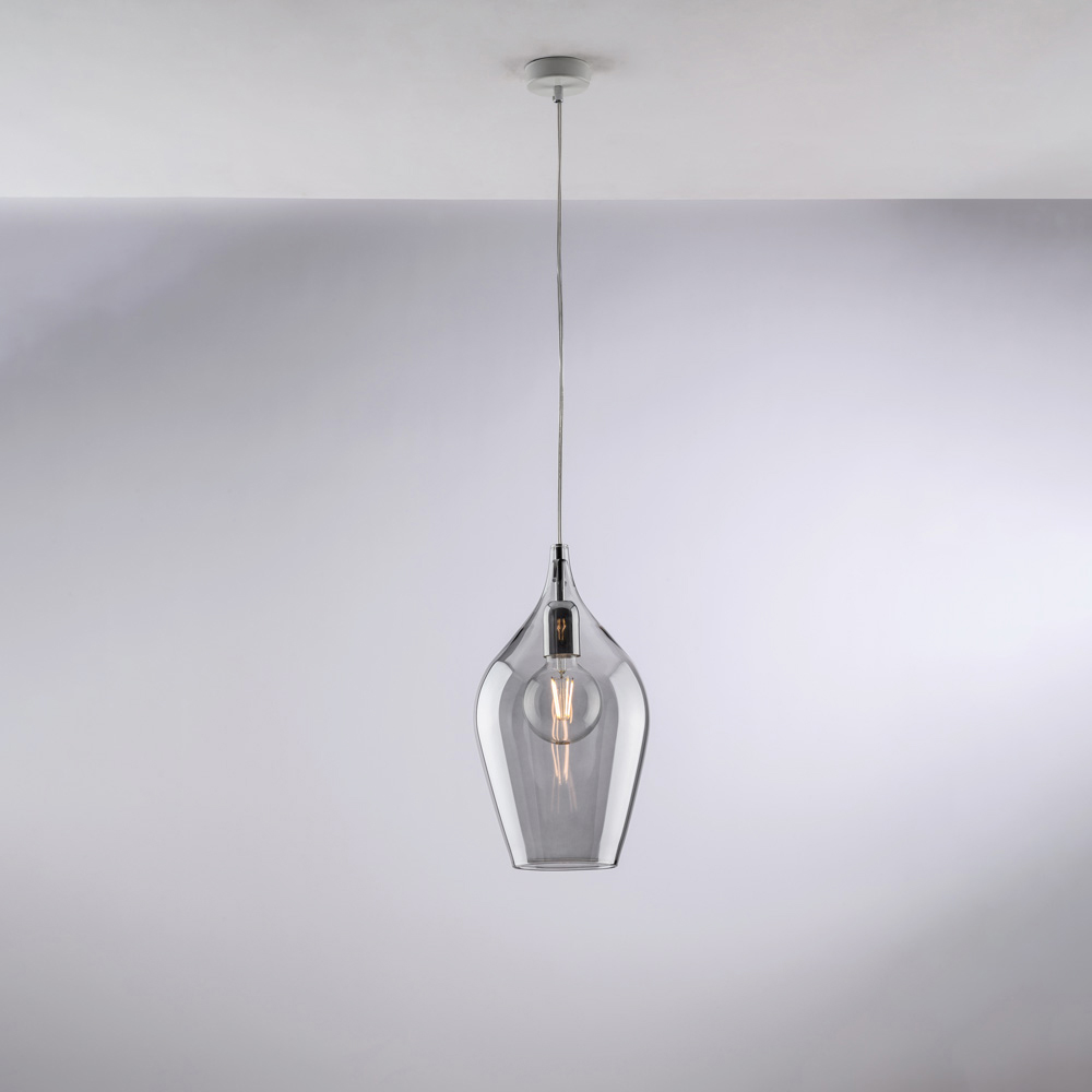 Available in Transparent , Amber , or Gray finishes, this pendant light adapts to a variety of furnishing styles: bright and minimalist in the transparent version, warm and enveloping in amber, elegant and modern in gray. It is ideal for kitchens , islands , dining tables , hallways , reading corners , and designer contract spaces , used individually or in compositions.