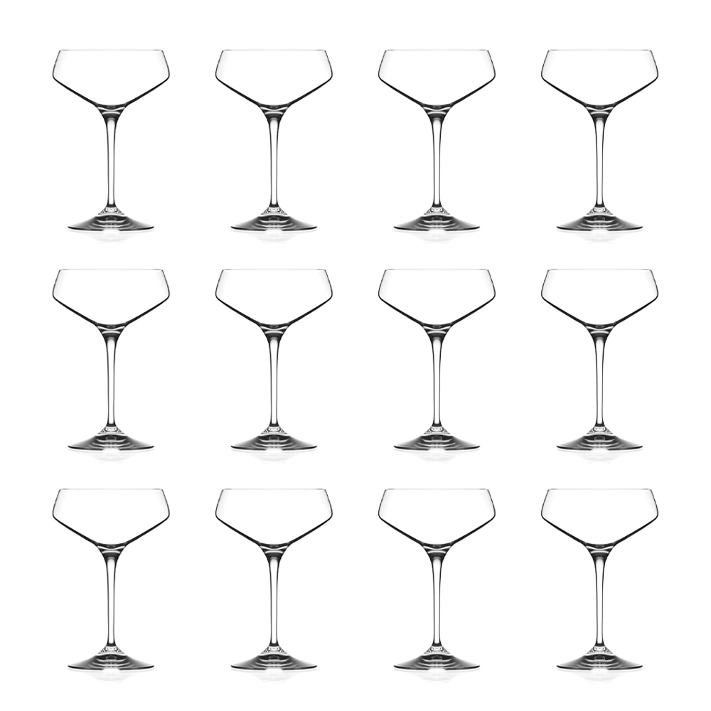 Set of 12-piece eco-crystal champagne glasses made in Italy.
