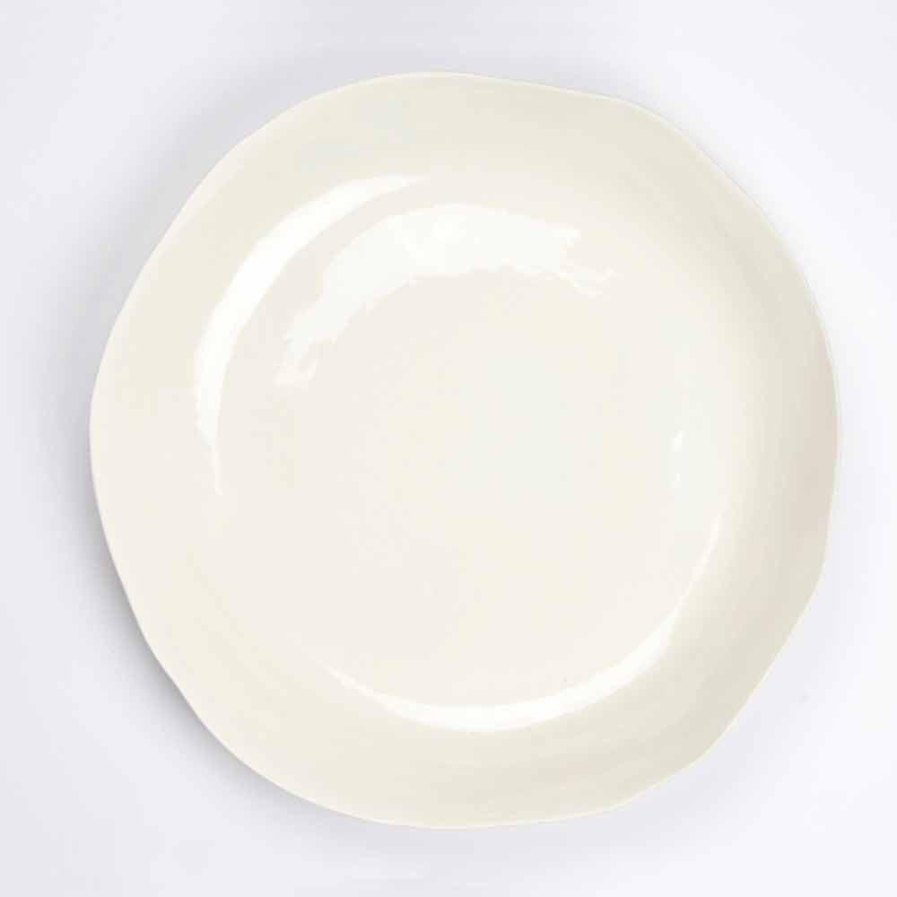 Round white porcelain serving plate, unique luxury piece handmade in Italy.