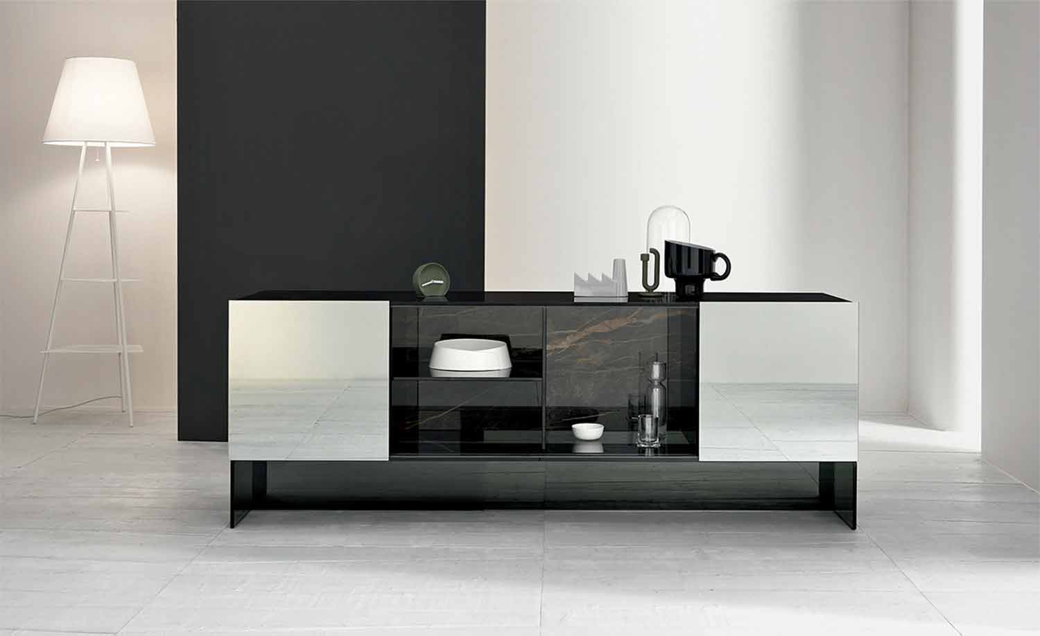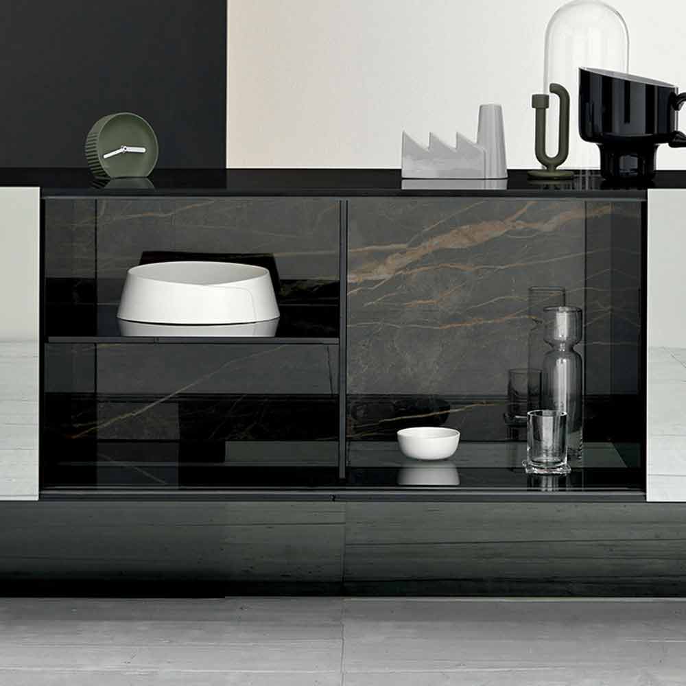 The living room sideboard Scocca is realized by hand in Italy with high-quality materials.