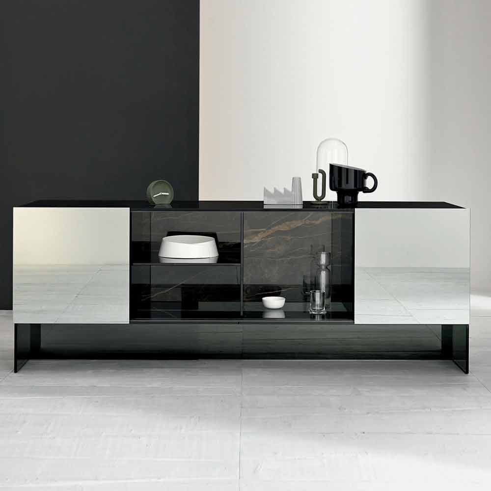 Entrance Design Sideboard with 2 Doors in Smokey Glass Made in Italy - Scocca
