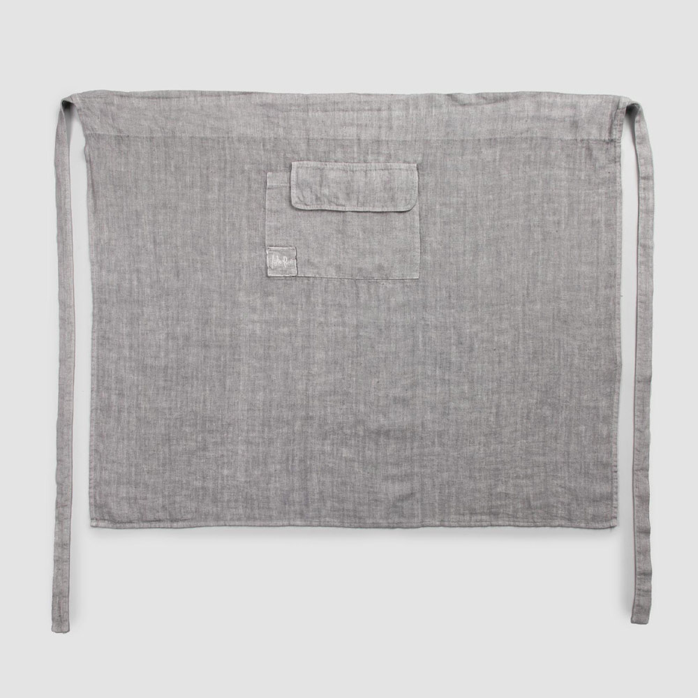 Kitchen apron in anthracite gray linen with pocket, low model made in Italy.