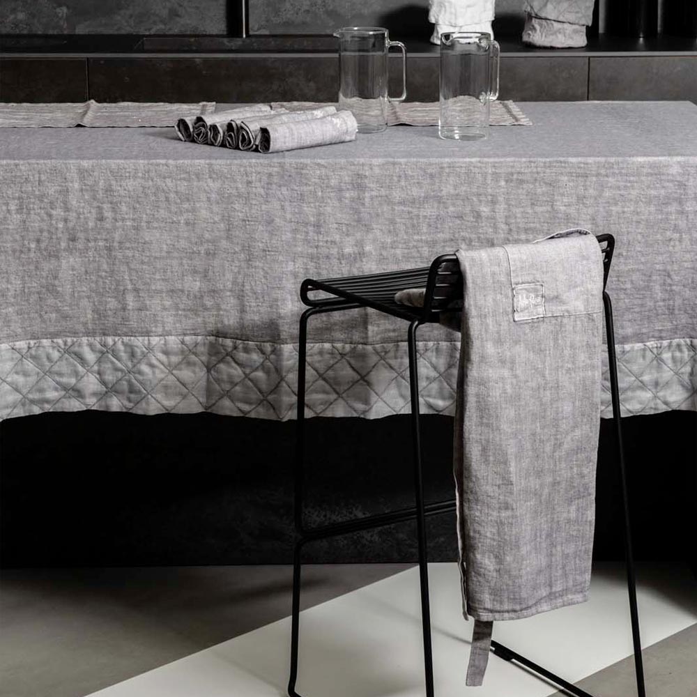 The value of tradition joins the modern lifestyle with this anthracite gray linen kitchen apron in a low pub style with a pocket. Made of 100% high quality linen and made soft to the touch thanks to special treatments that enhance its natural appearance. The fabric is ideal for the table because it is hypoallergenic and antibacterial , in addition to the use of natural and hypoallergenic dyes that give it shine and panache. Lightness , freedom, elegance and purity are the key words contained in this product with a noble charm and fine fabric .