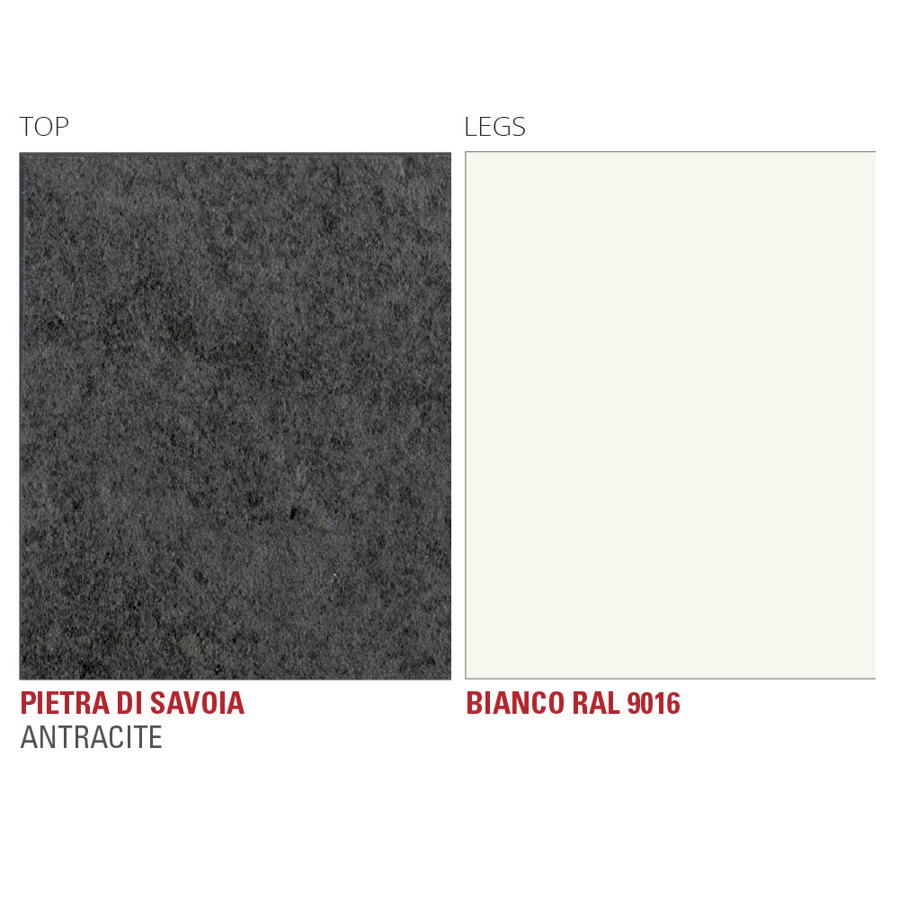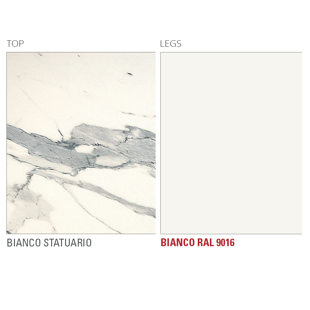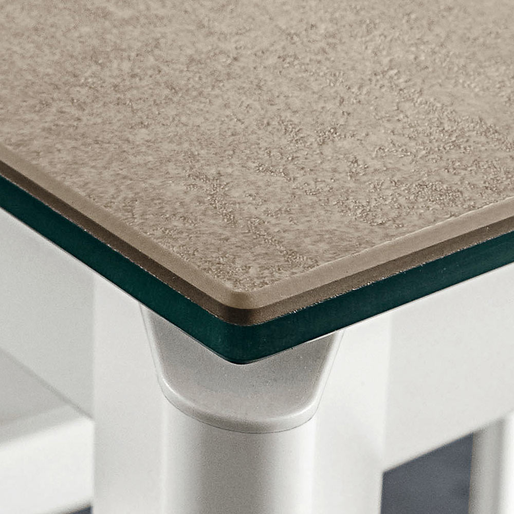 Dining table made in Italy with laminam top (thickness 20 mm) equipped with glossy lacquered glass support and base in aluminum lacquered with epoxy powders, white finish. A simple and minimal furnishing idea which, thanks to its small size, offers the possibility of enriching and decorating even the smallest rooms with personality. Its peculiarity is the wonderful top which gives the aesthetics of the product its elegance and the fundamental functional side thanks to a revolutionary ceramic surface created through a porcelain stoneware mixture which allows to obtain a top resistant to solvents, disinfectants and detergents as well as to deep scratches and abrasions. It is also particularly simple and quick to clean, managing to always keep its peculiar characteristics unchanged.