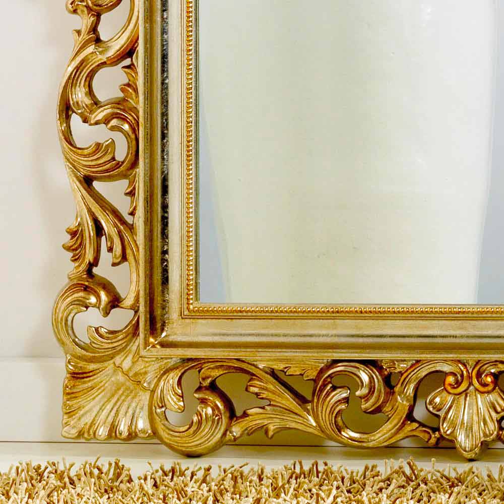 The Tiara mirror is characterized by a craftsmanship carried out using quality materials and using the experience of skilled Italian artisans. The frame is made of wood decorated with carvings. Mecca silver leaf finish. Crystal mirror, 4mm thick. Made in Italy.