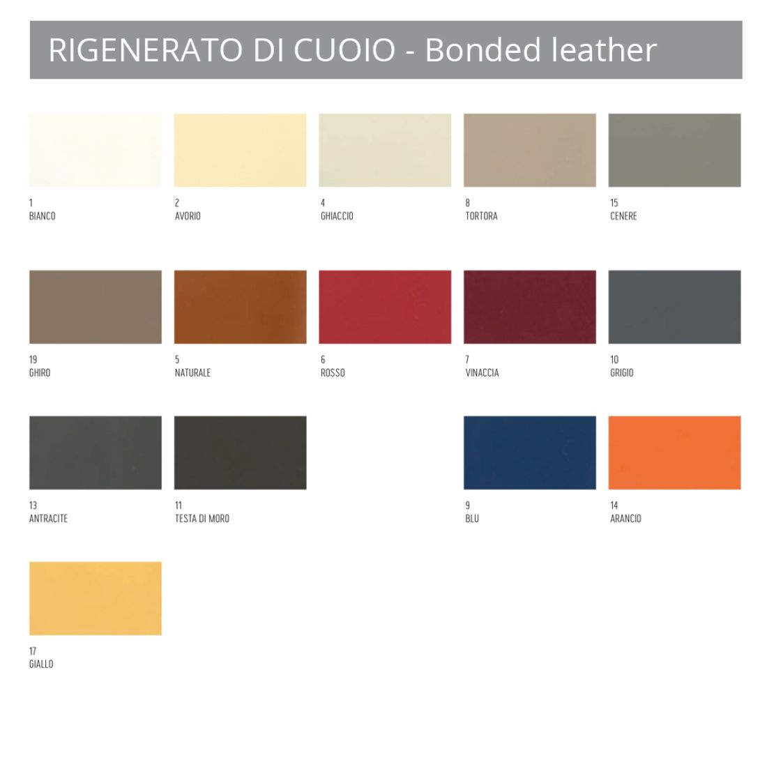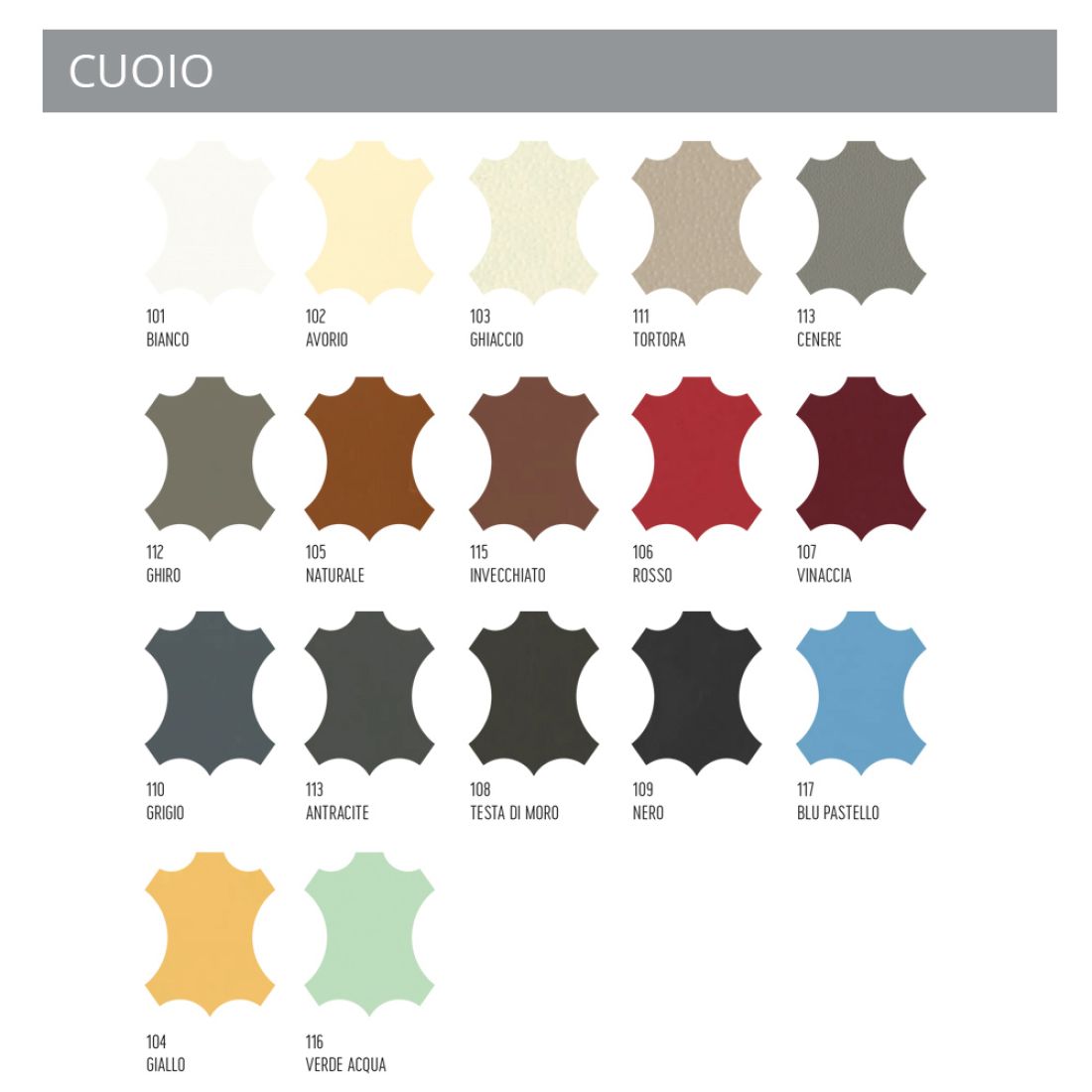 View the color chart corresponding to the type of leather desired and indicate the code of the color you have chosen in the appropriate box.