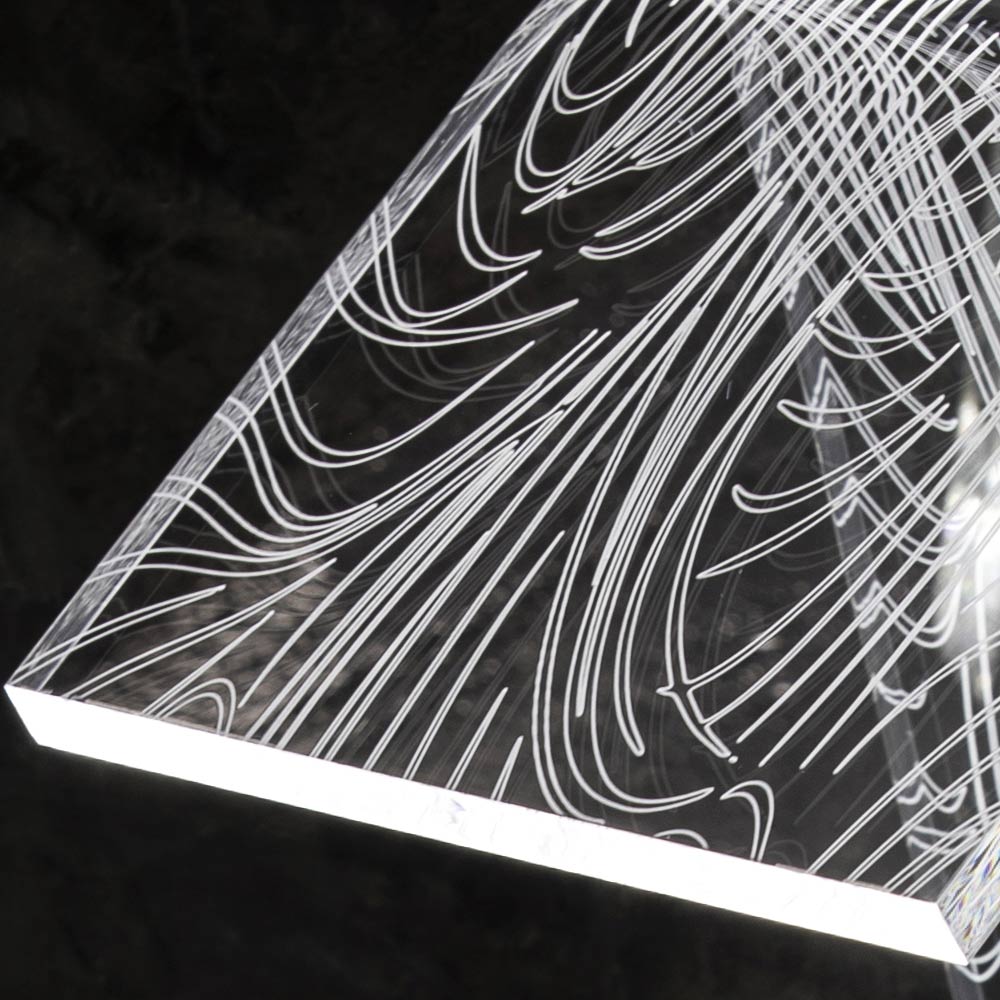 play of effect made possible thanks to the physical-technical characteristics of the acrylic crystal.